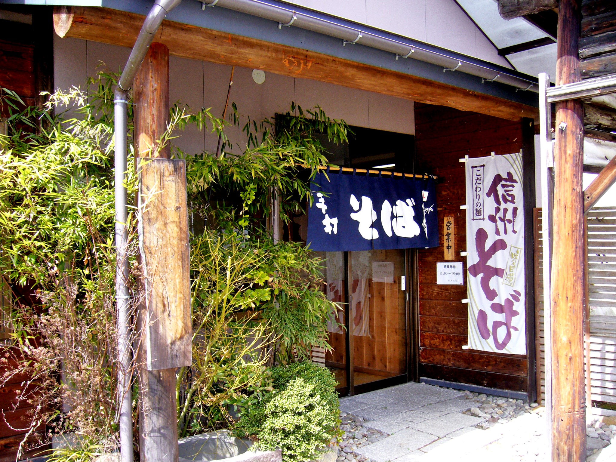 ということで仁之倉にある、霧下そば「仁の蔵」でそばをいただくことにした。地元で採れたものをその土地で食べる。仁之倉地区の家庭では日常の食卓でそばを食べてきました。生産組合直営の仁の蔵は「うまいそばはを産地で食べる」というシンプルな発想から生まれた本当の霧下そばを提供するお店です。入口の大きな自作の木の看板が目印で、広い駐車場は入りやすい。