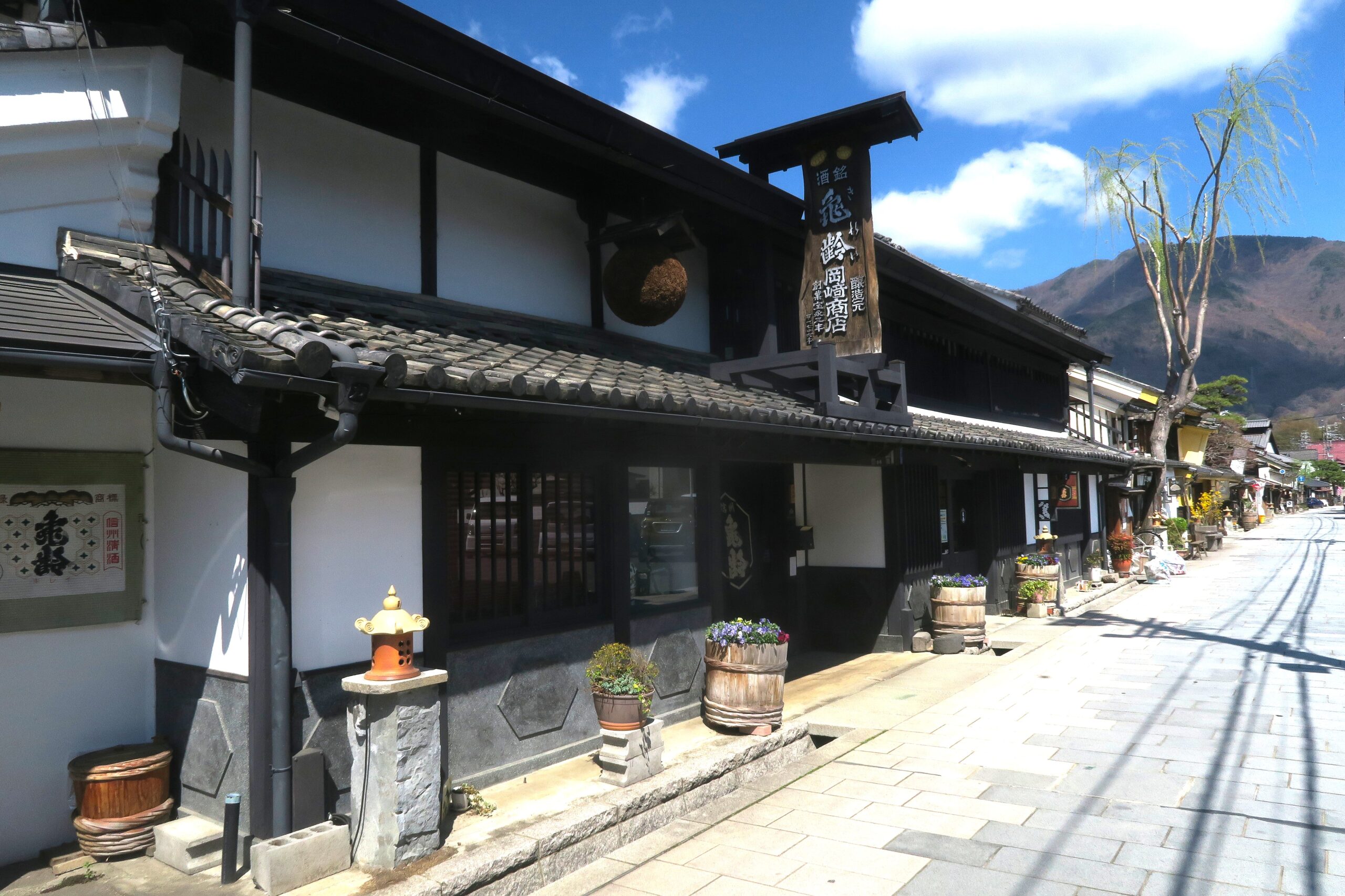 江戸時代からの創業当時そのままに補修しながら保存してきたという風格ある木造の建物が特徴の酒蔵が「岡崎酒造」。寛文5年(1665)から、菅平水系の水を使い、昔ながらの手法を守り手間暇かけて酒造りをおこなってきた老舗の造り酒屋です。全国で珍しい女性杜氏が醸す蔵で代表銘柄は「亀齢(きれい)」、洗米全量手洗いから槽しぼりまで手造りにこだわり丁寧な酒造りをしています。清酒仕込みの梅酒や梅の甘露煮、地酒ケーキ等のお土産も売っています。