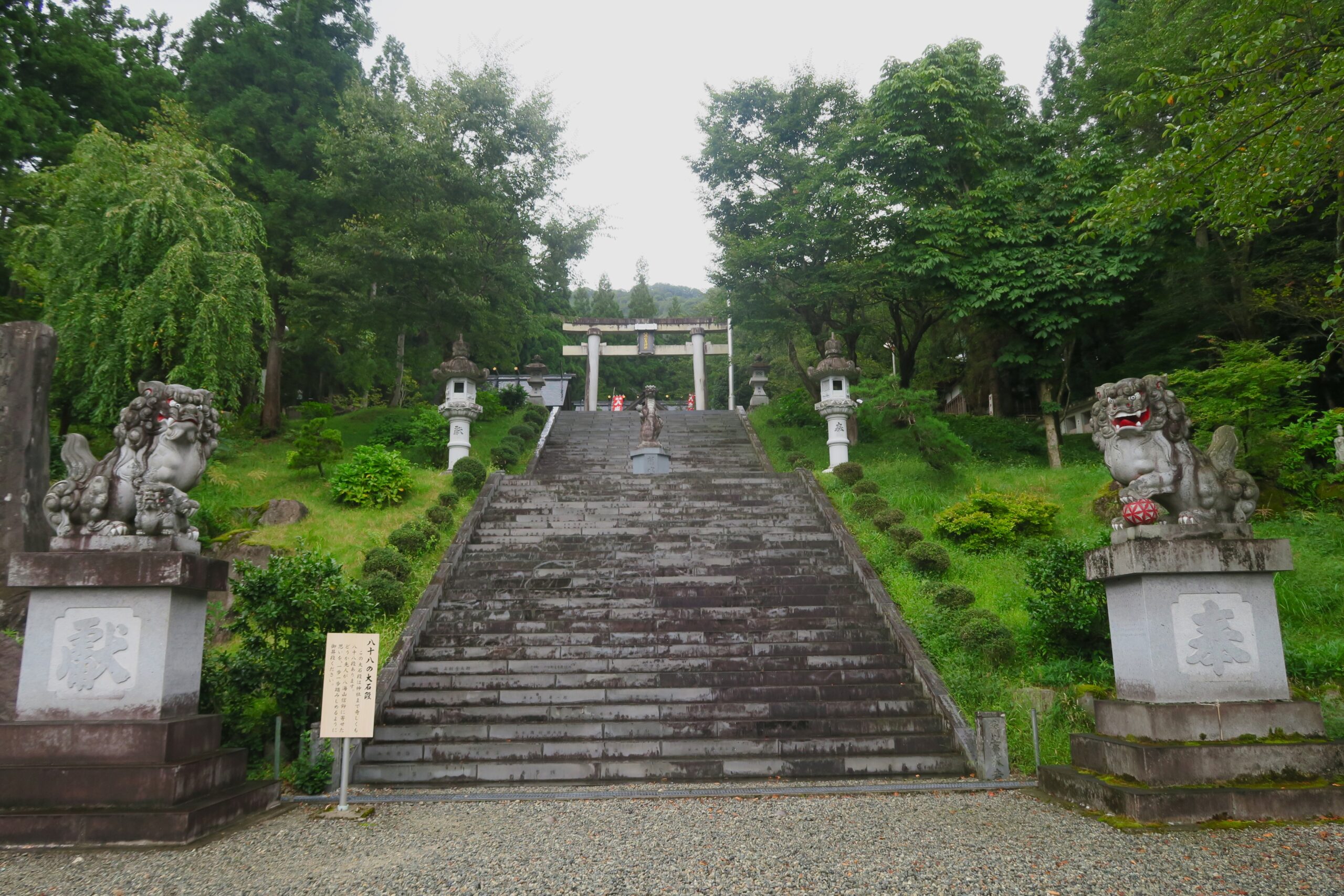 祭場の広場から神社に至る大石段は奇しくも八十八段を数え、高台の神社に向かって柏手を打つと眼前の石段が木霊してキューンと鳴り響く事から、これは神の歓びの感応と語り継がれ、龍鳴と呼ばれるようになりました。平成28年10月、神社に続く石段の踊り場に2m半ばの威容を誇る龍鳴の石像が立ちました。これは八海山には古くから龍神信仰があり、開祖。泰賢行者が登拝のみぎり神力により荒ぶる龍を封じこめ、激しい雷雨を鎮めたという言い伝えがあります。