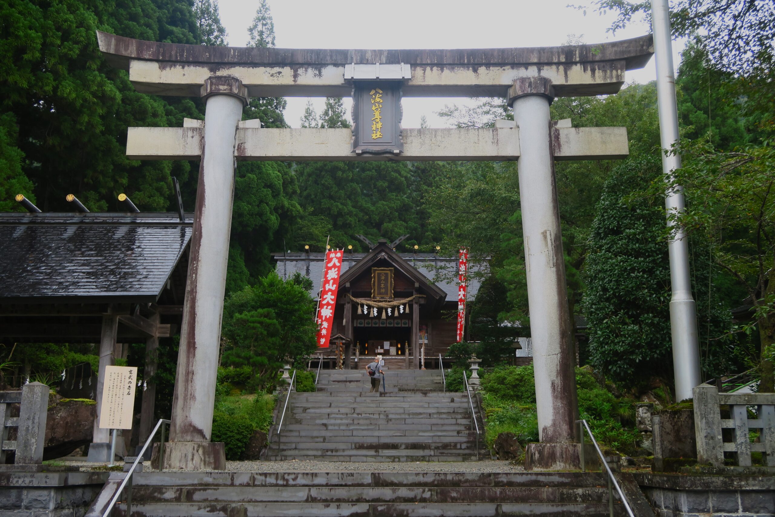 帰りにもう一つの登山口の大崎口にある「八海山尊神社」に詣でます。普角上人が八海山屏風道を開削した際に随行した泰賢行者自らが享和3年(1803)開削したのが八海山大崎口で、これが大崎口里宮(現八海山尊神社)の始まりです。八海山開闢の往時を偲ばせる苔むした里宮の境内は、深閑とした森の中にあります。一年を通じ各地より集まる修行者が水垢離をとり、護摩祈祷、五穀断ちをし、神意を戴く霊場です。
