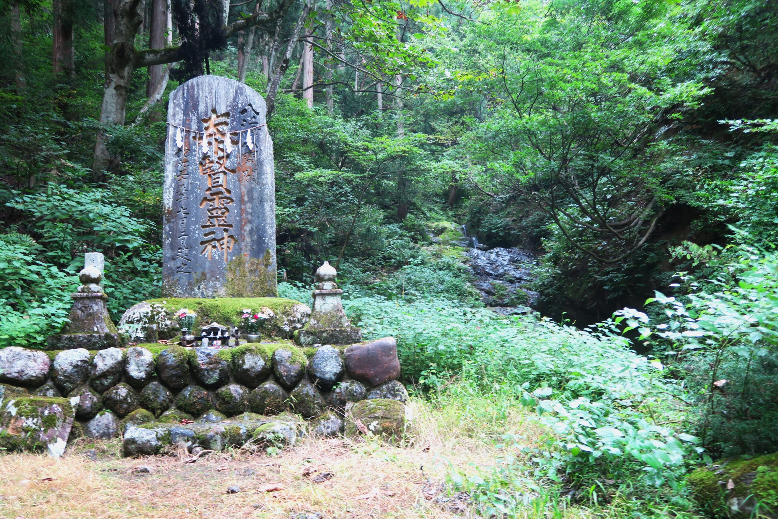 その奥には不動の滝と木食泰賢霊神碑とがあり、八海山開闢の労苦が偲ばれます。