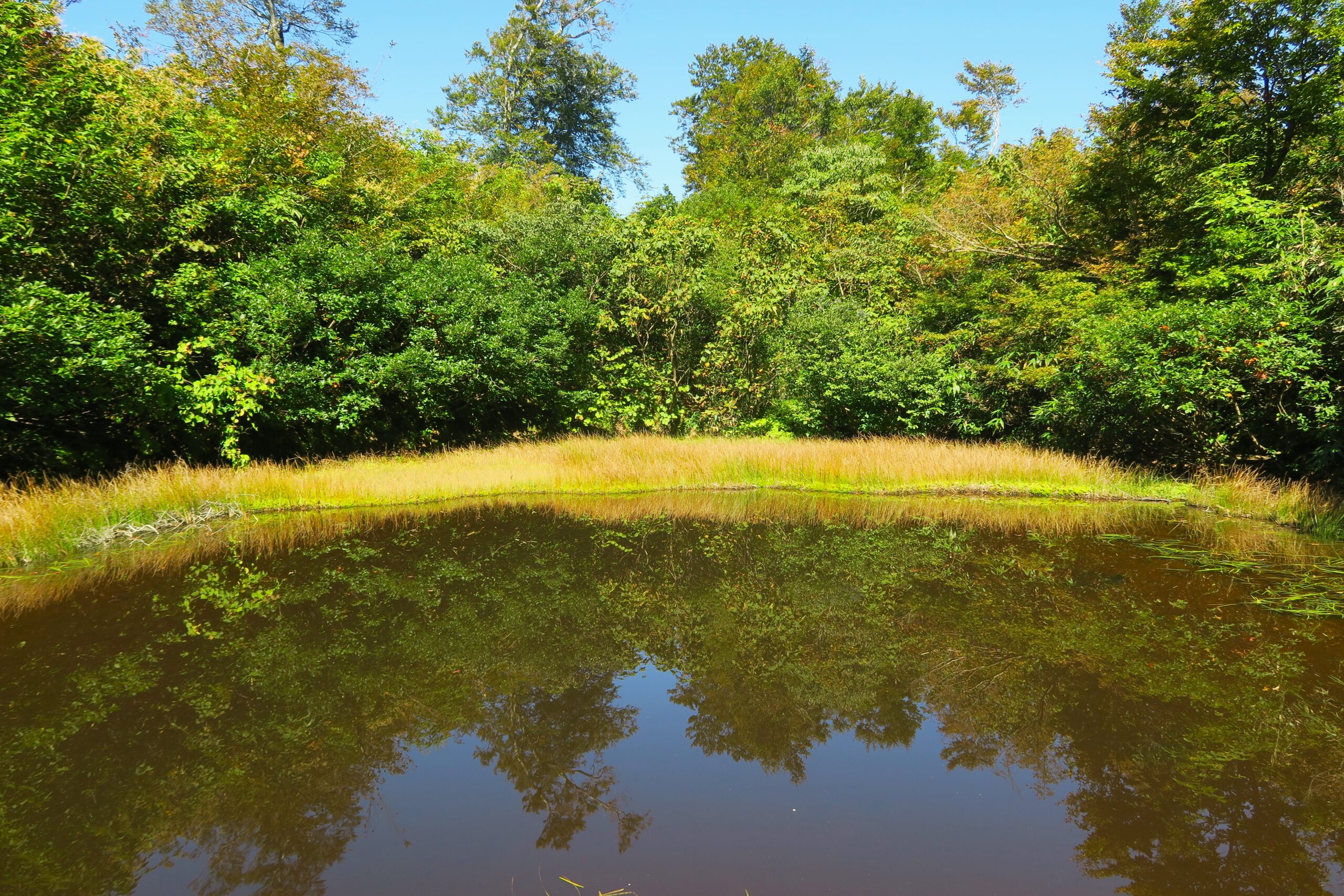 登山道は多少前夜の雨でぬかるんでいる箇所はあるもののきれいに整備されていて歩きやすい。20分ほどで大倉口からの合流地点。4合目半出合になり、さらに歩き始めて1時間ほどで漕池というモリアオガエルの生息地にさしかかります。