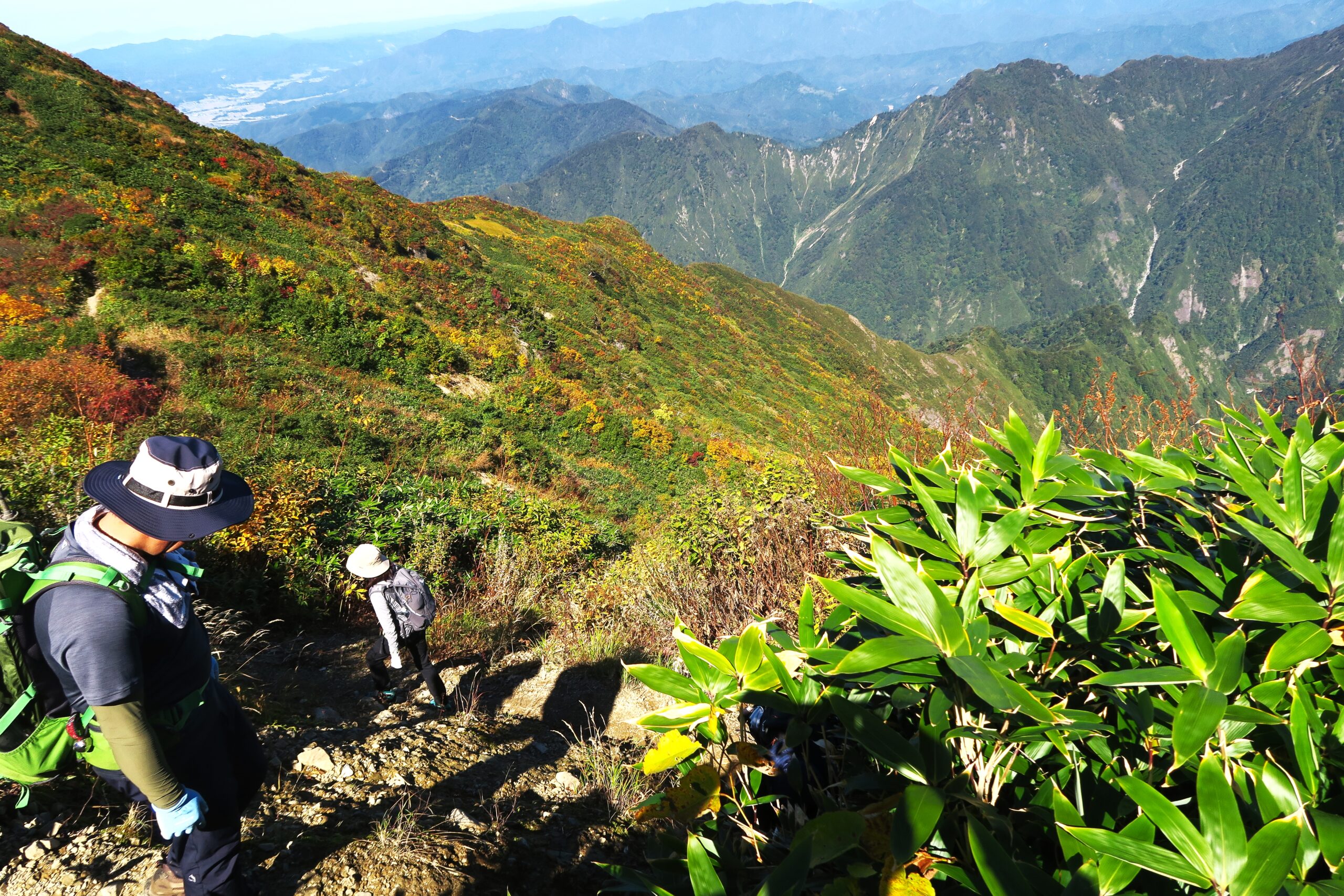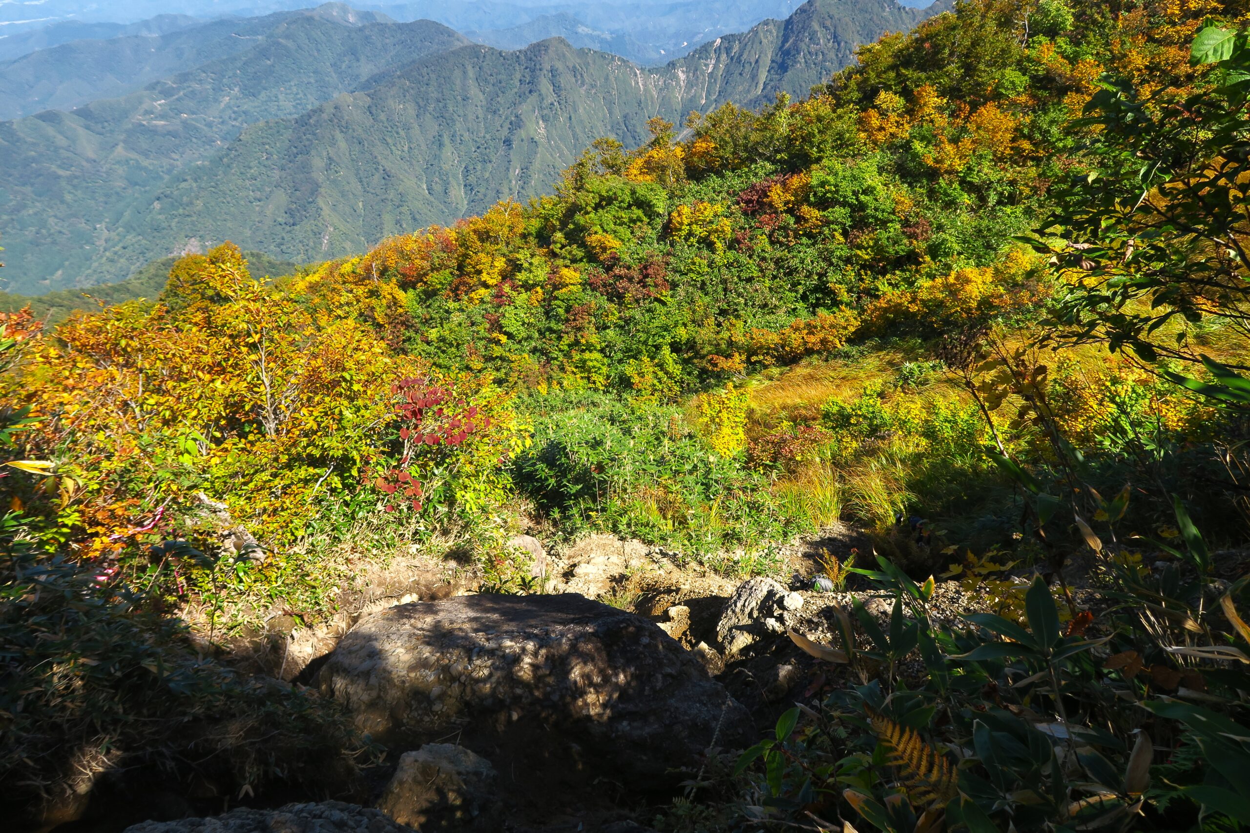 ここまで約2時間半、この先の八ッ峰コース(往復約6時間半)には二つのルートがあり、連なる8っの岩山をひたすら鎖で登って下りて縦走するコースと初級者のお薦めの登山道を歩いて大日岳の麓まで行き、登頂する迂回コースです。今回はここまでで昼食後下山します。