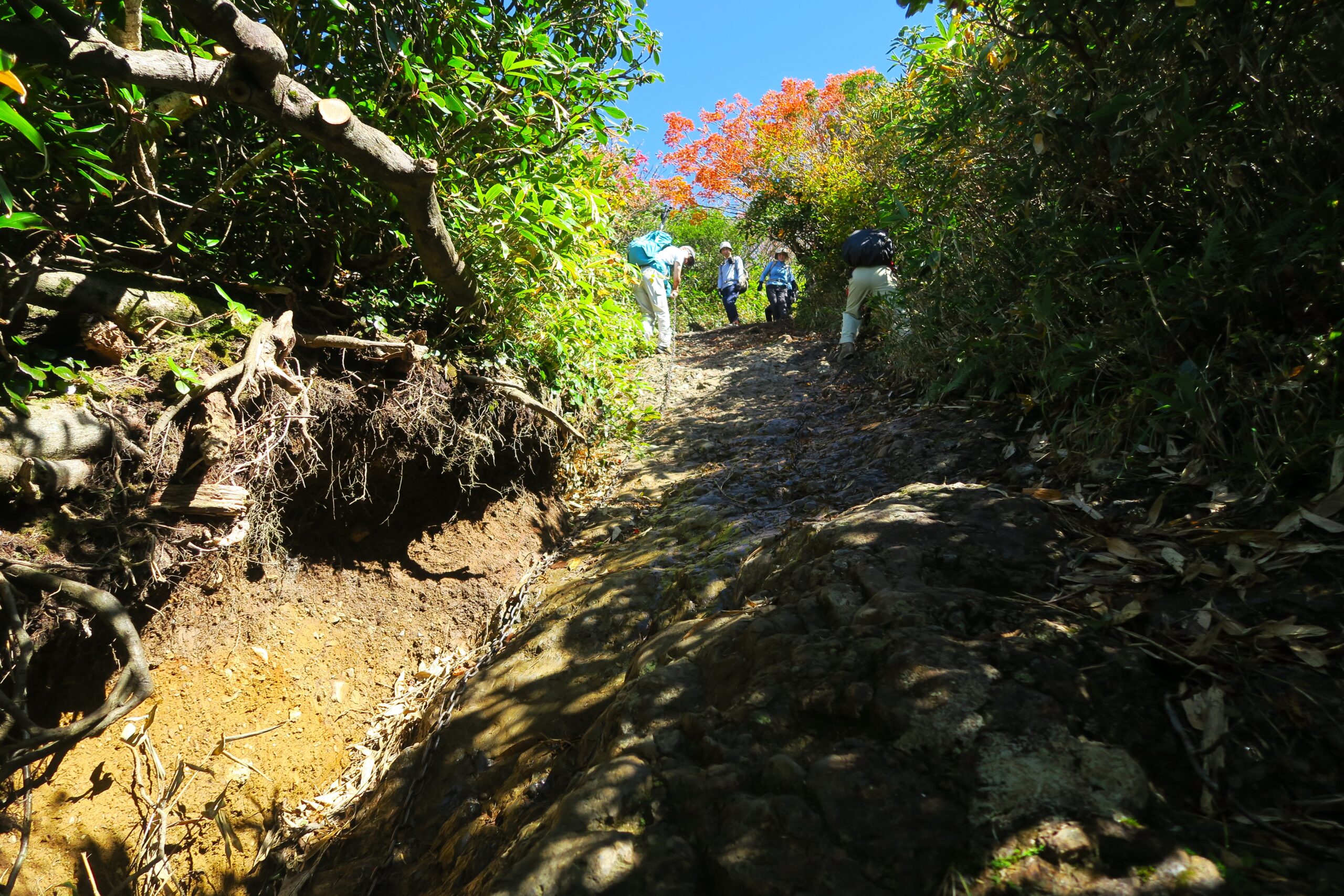 下山時は鎖場で足を滑らせないよう気を引き締めて慎重に下りていきます。