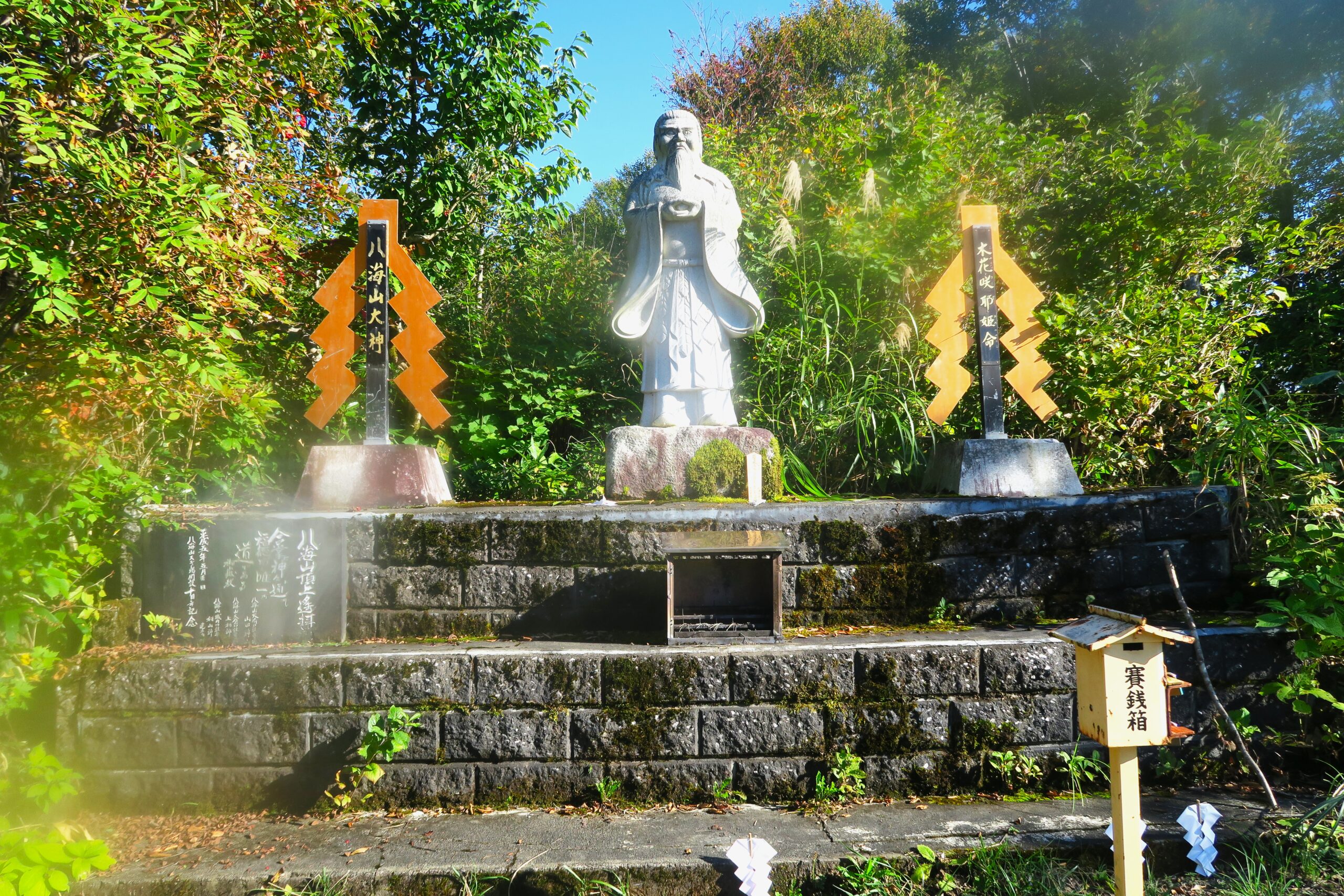 3分ほどで上りきったところが八海山遥拝所があり道中の安全を祈願します。右側に八海山大神、左に木花咲耶姫命、中央に八海山大神の立像があります。