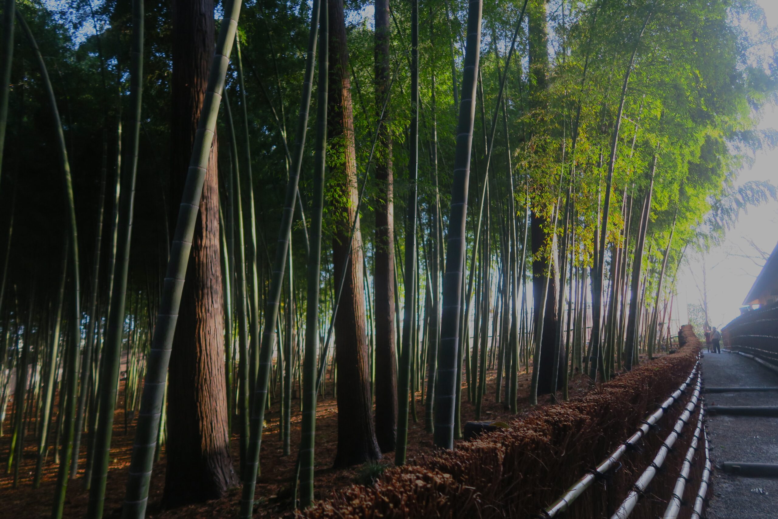好文亭表門から一の木戸を抜けすぐの孟宗竹林や杉林などを配した「」で心を静めます。園内の西側に広がる竹林は、弓の材料にするために斉昭公が京都の男山の竹を移植したものです。空を覆い尽くす孟宗竹と立ち並ぶ杉が、どこか幻想的な世界を感じさせます。