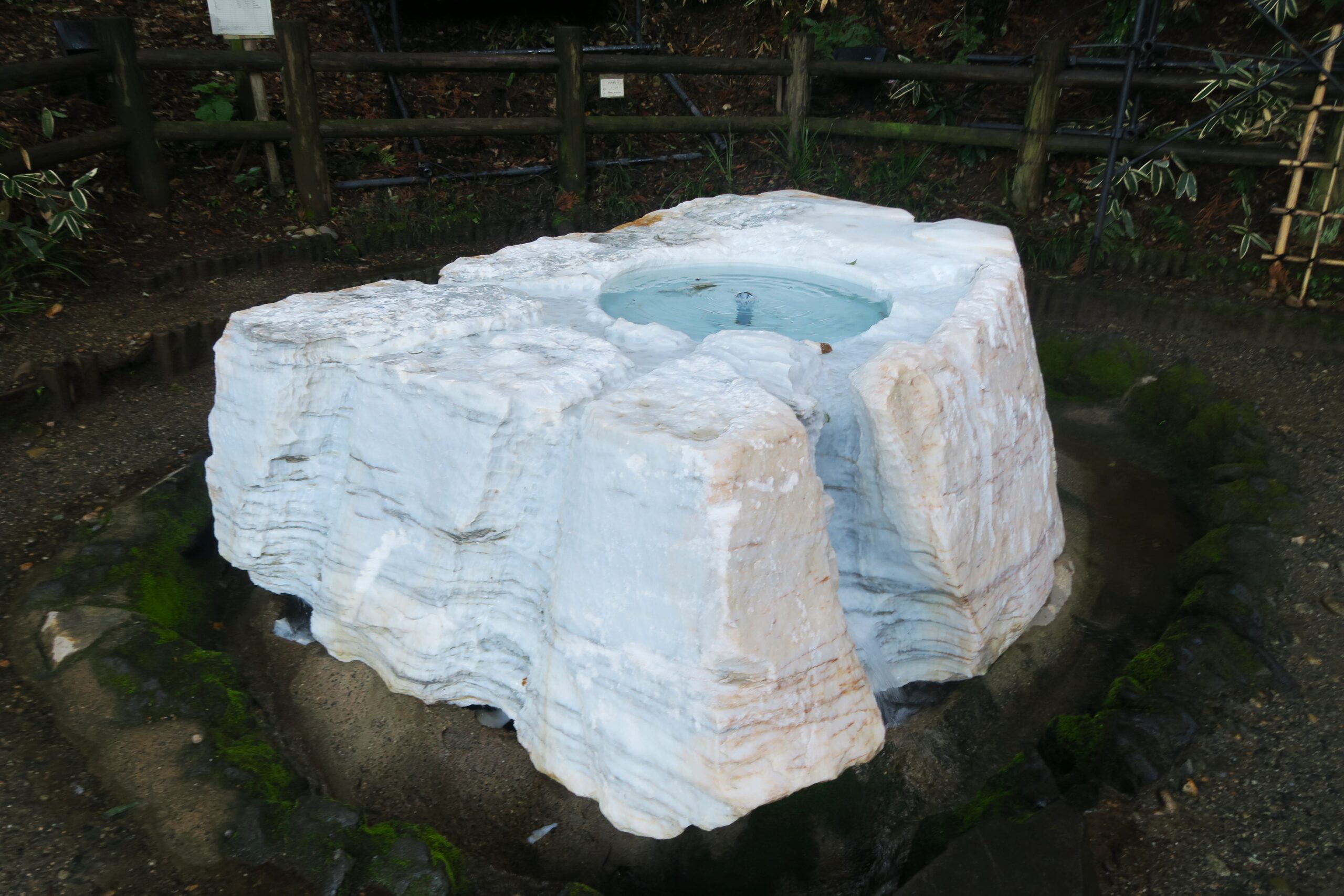 崖下から湧く「吐玉泉」。常陸太田市に産する寒水石から噴出する湧水は斉昭公が茶会の時に利用したという名水。さらに進むことで大森杉、笹の叢と幽遠閑寂な「陰」の世界が広がります。