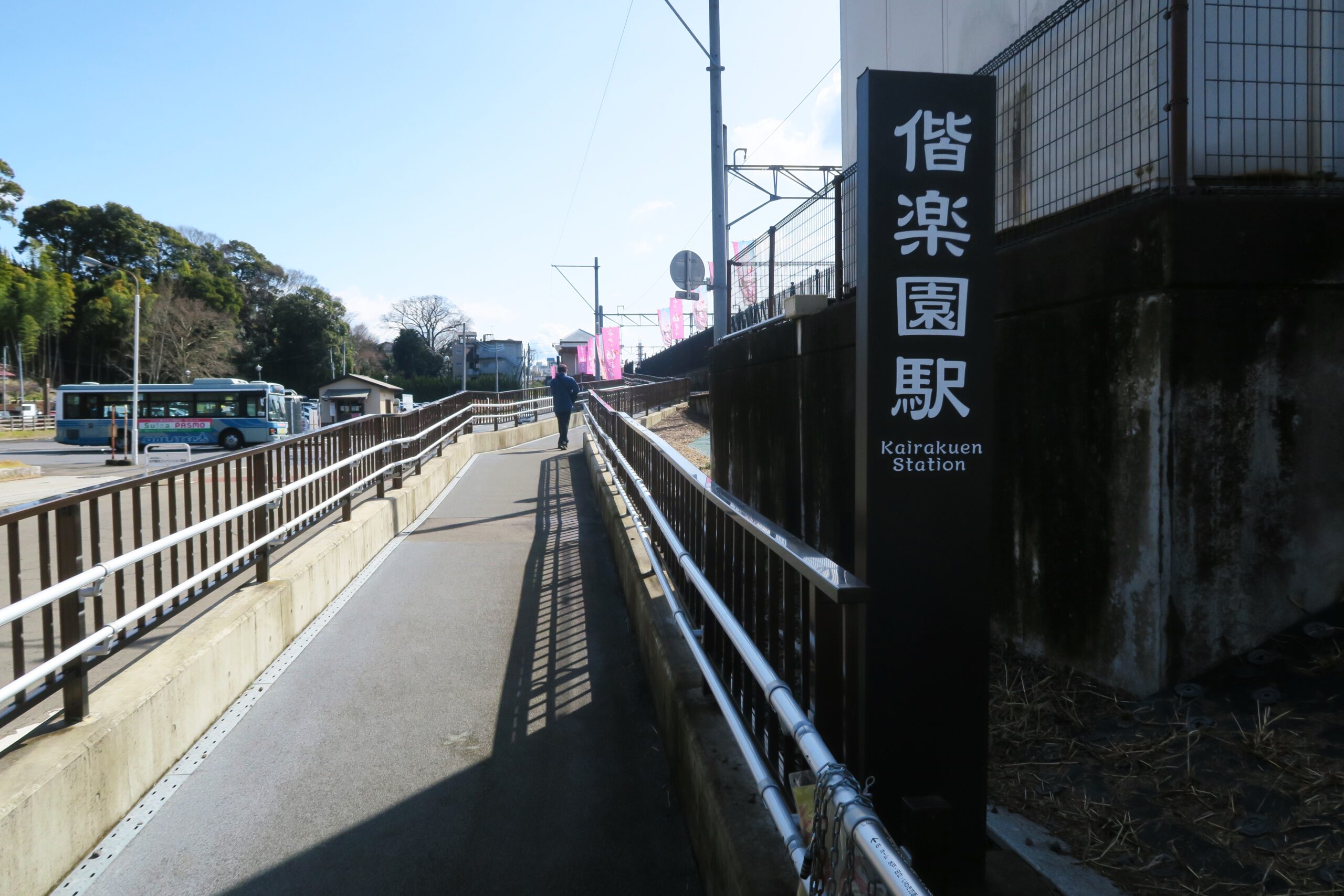 次に偕楽園とあわせて水戸の城下町をめぐるため、車はそのまま偕楽園下駐車場に停めておき偕楽園駅(臨時駅)からJR常磐線で一駅の水戸駅に向かいます。