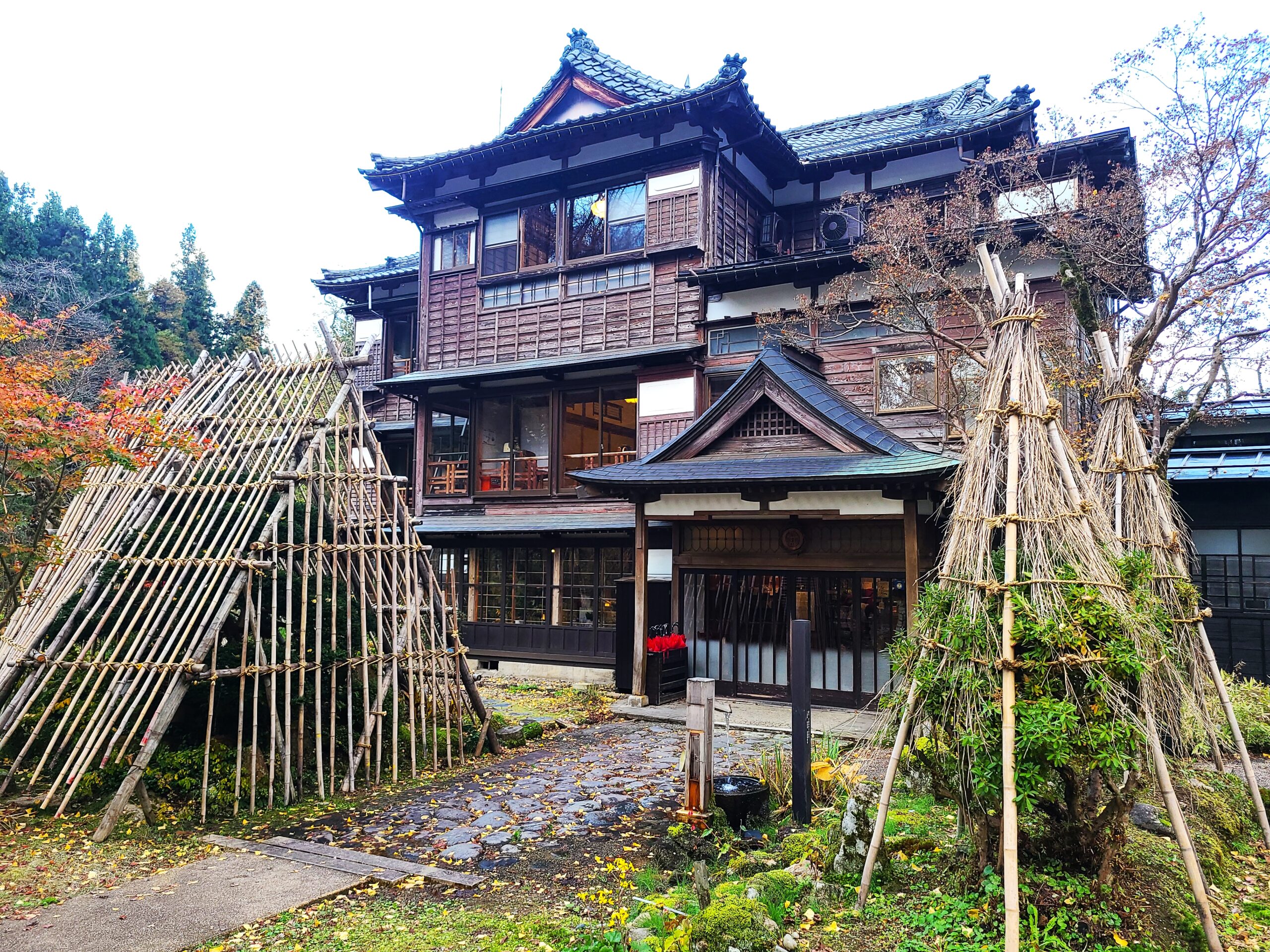 前庭に植えられた銀杏は秋になると絨毯うを敷き詰めたように辺りを黄色に染め、雪に包まれる冬は、例年2月頃に灯される雪行燈のほのかな明かりが本館をやさしく彩ます。