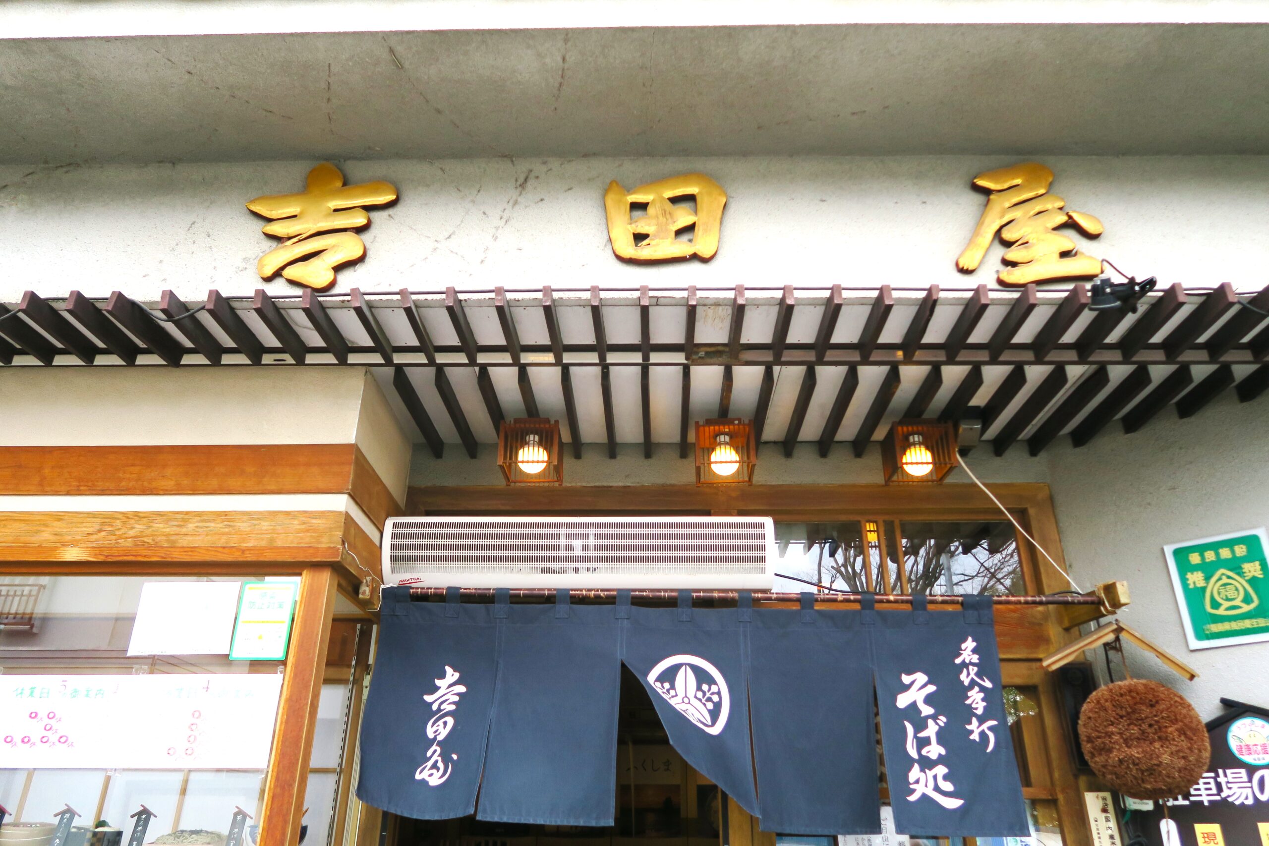 小峰城から線路を挟んで南側に広がる城下町を歩きます。駅前の道が奥州街道で、古代からの幹線道・東山道が江時代に整備された道です。五街道の一つで、白河宿は東北の玄関口として栄えました。駅前から奥州街道(国道294)沿いに西へ、かつて「十軒店」と呼ばれた大鈎形のクランクの先50mほどのところに「そば処吉田屋」があります。白河藩第3代藩主松平定信が栽培を推奨したそばは、ラーメンよりも古くから続く白河の食文化です。日本4大そば処(出雲そば、信州そば、盛岡わんこそば)のひとつ白河そばは、阿武隈山系の清らかで冷たい水と寒冷な気候などそば粉と合致しおいしいそば処として知られます。