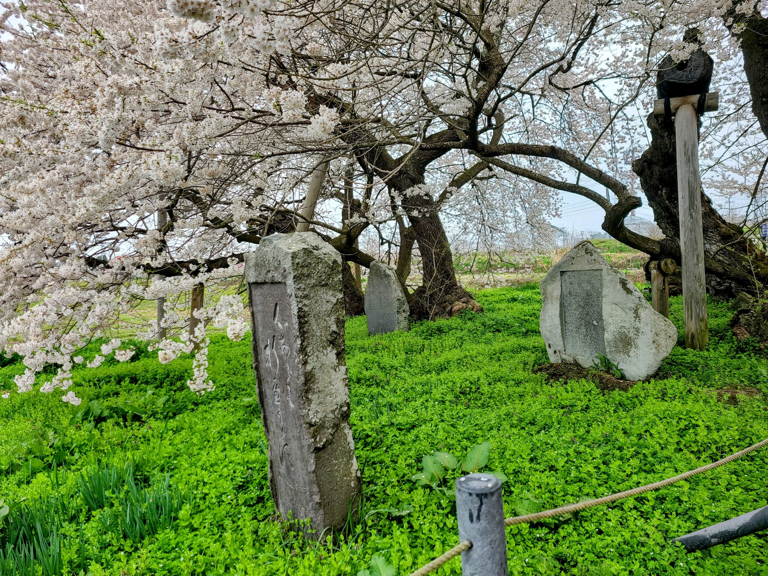 石部桜から離れて建っている歌碑は「星暁邨歌碑」です。『花みつつかすみ酌むまのひと時はうき世の外の我世なりけり』と自然の美しさに触れることで、日常の煩わしさや苦から解放される瞬間を描いています。