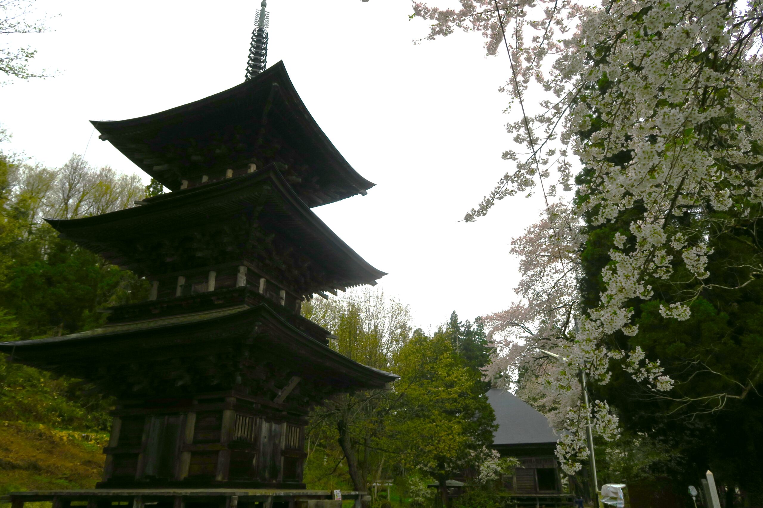 観音堂内には2躯の十一面観音像が安置され、三重塔は会津に現存する唯一の塔であり、安永9年(1780)に完成しました。屋根の逓減率が少ないことや、相輪までの高さが20mを越すなど、大変美しい三重塔です。