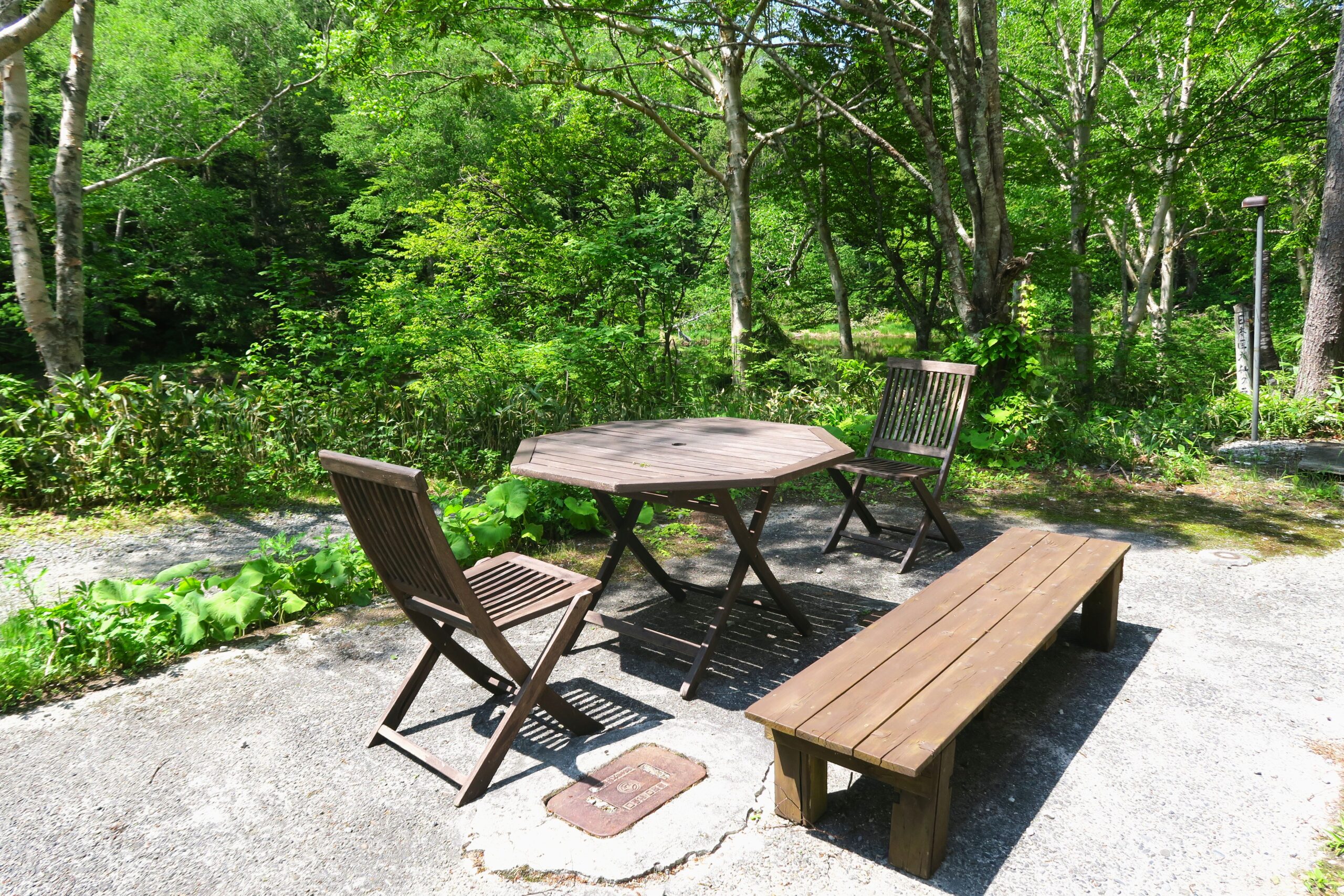 上の小池から長池畔の杣クラブヒュッテ前のチェアに座りしばしの休憩をとります。