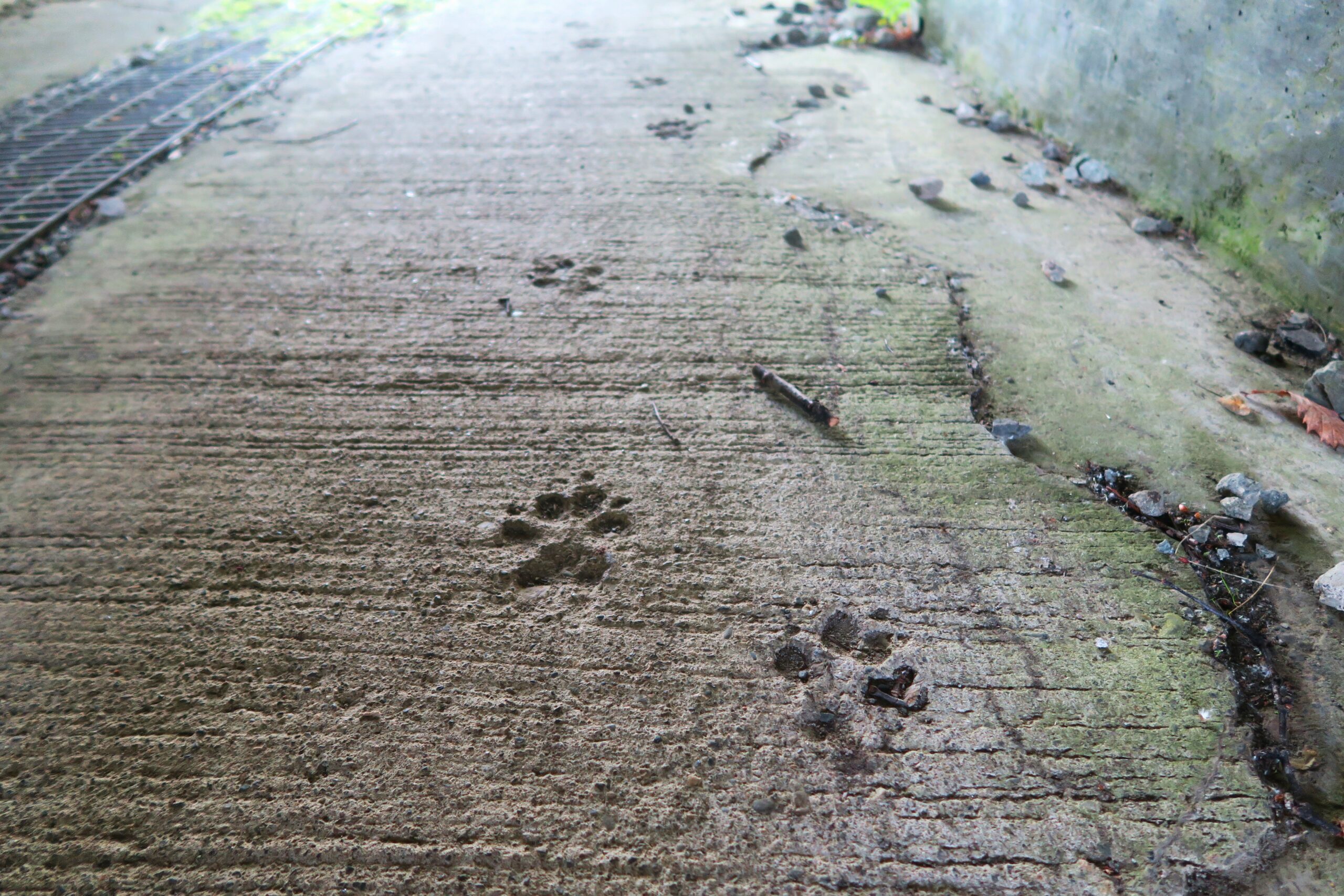 最後に国道をくぐると蓮池です。車道をくぐるトンネルには、セメントが乾く前に歩いたであろう小動物の足跡がきれいに残っています。