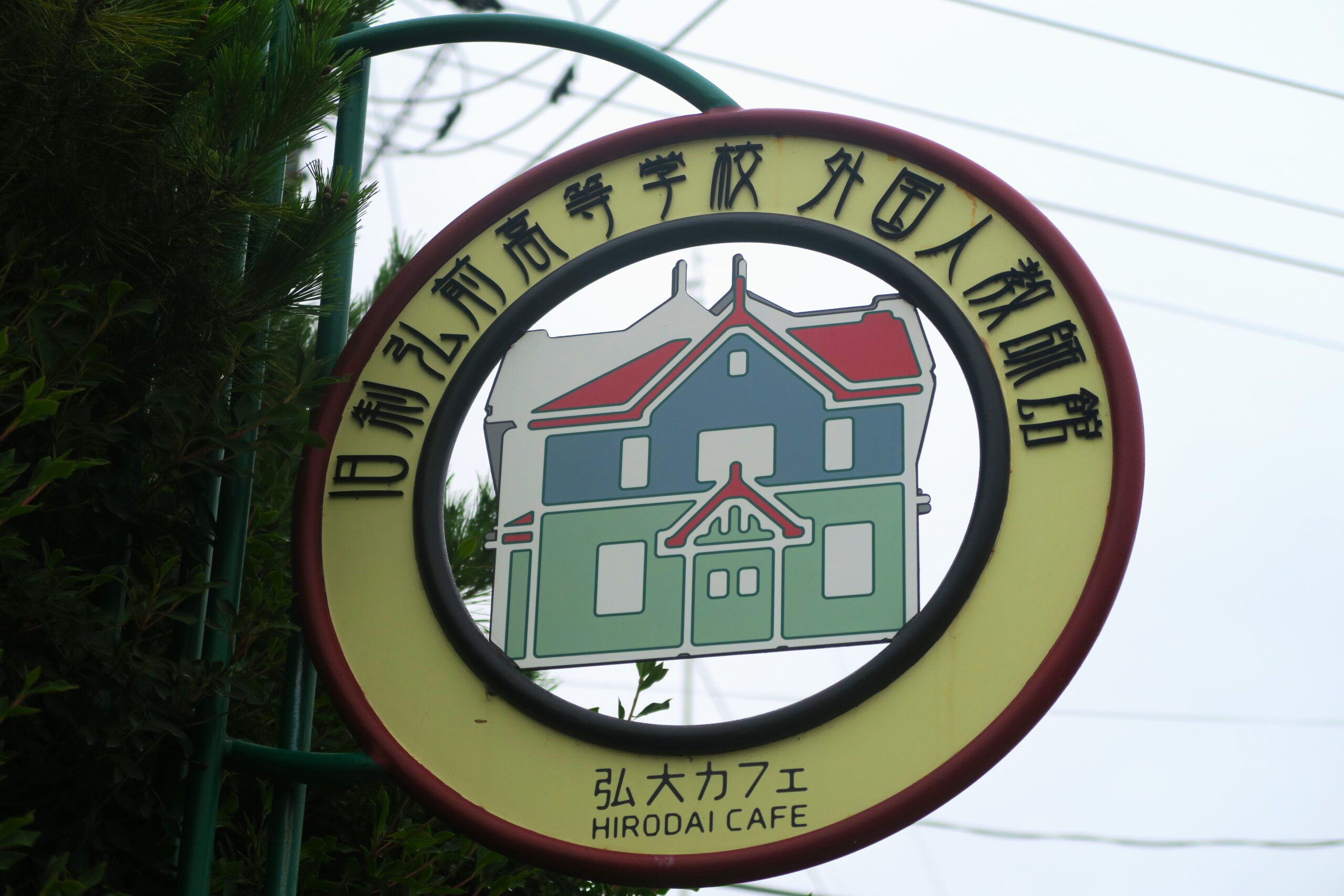 近くには大正14年(1925)建築の「旧制弘前高等学校外国人教師館」があります。煉瓦積み基礎、窓、外壁などに洋風建築の意匠が多く取り入れられた木造二階建の端正な建物です。屋根は棟が交わる半切妻造で一階は鎧下見板張に両開窓、二階はモルタル塗に上げ下げ窓と変化をつけています。設計施工は堀江佐吉のもと、副棟梁として働いていた川本重次郎によって建てられました。