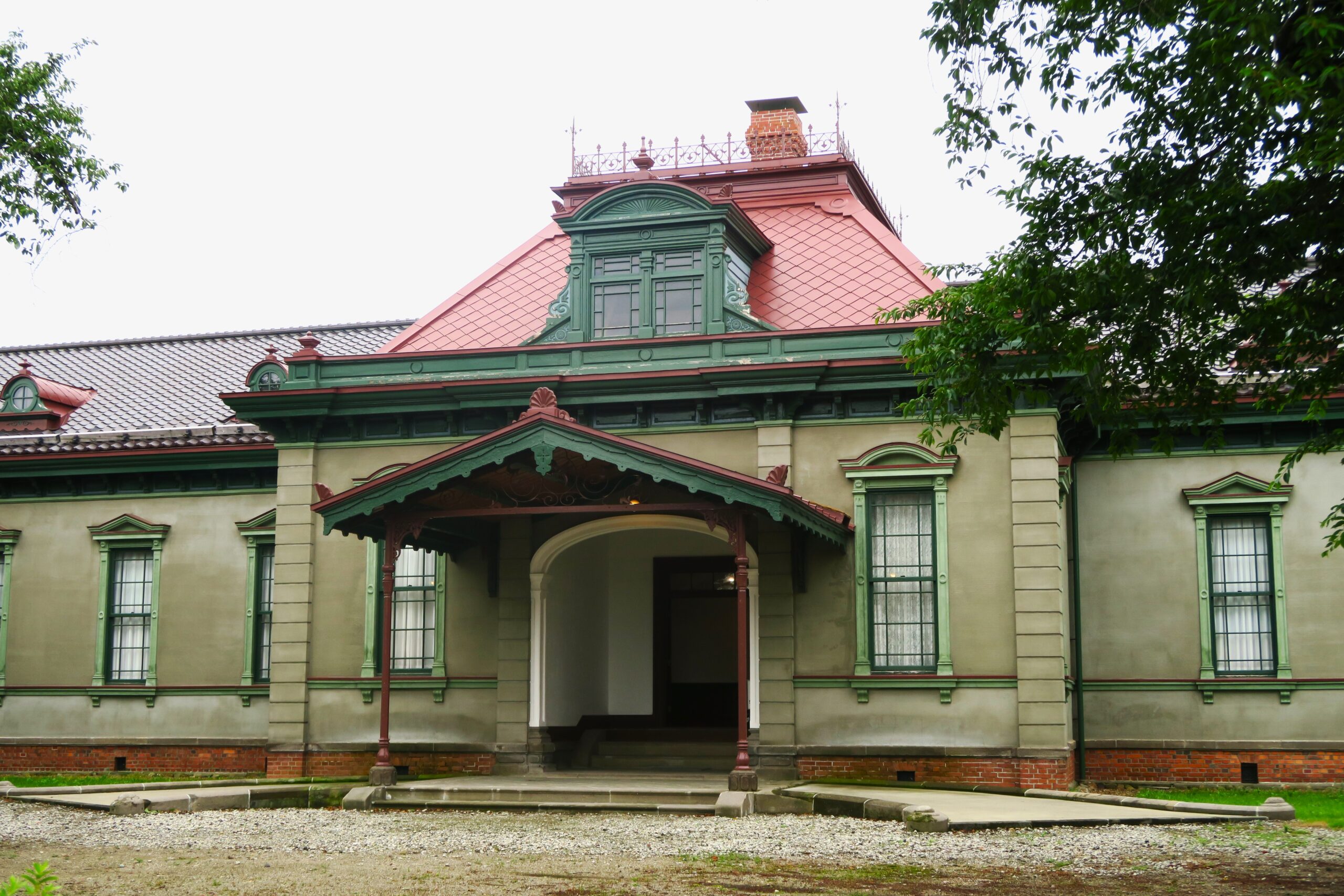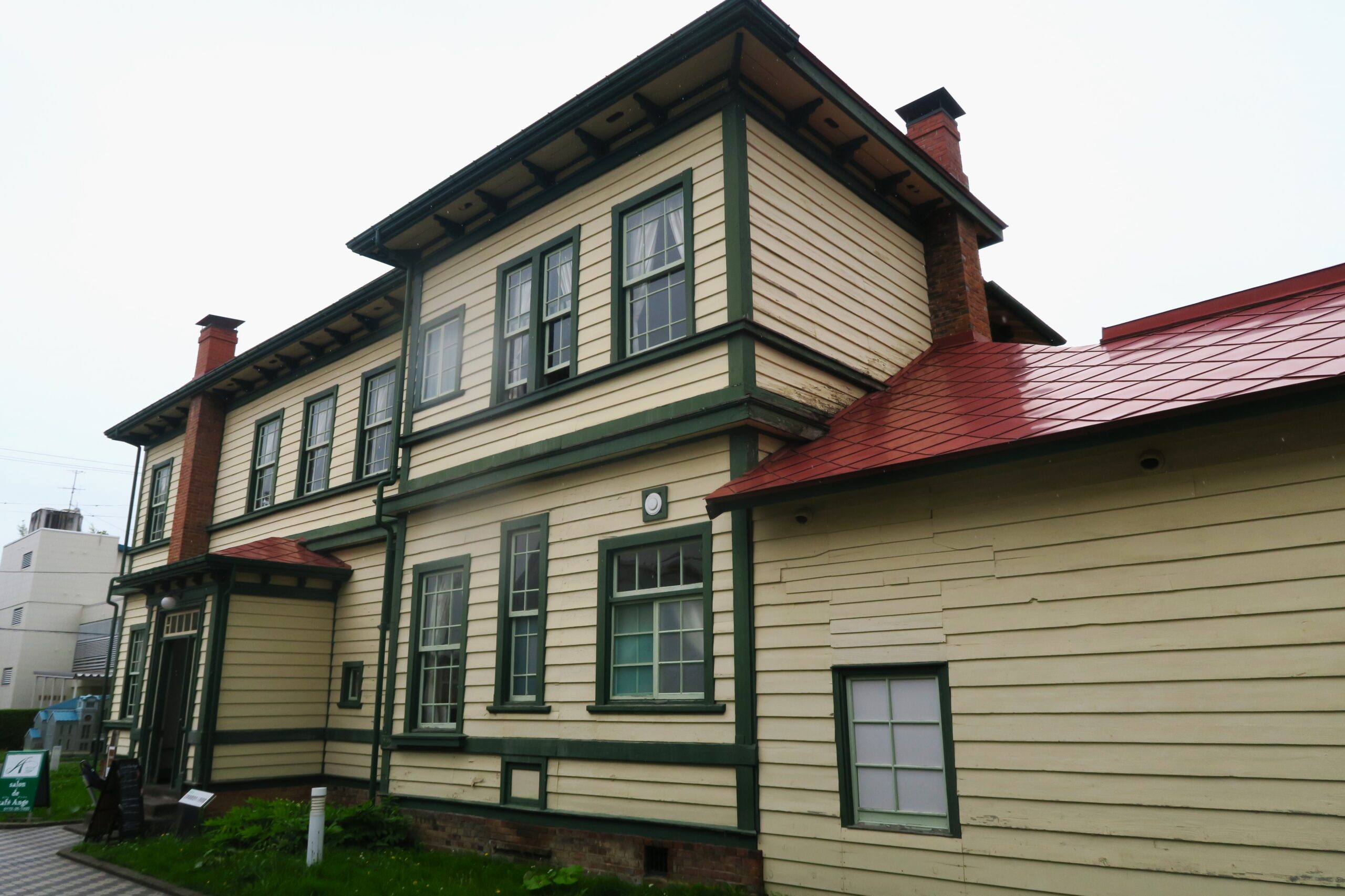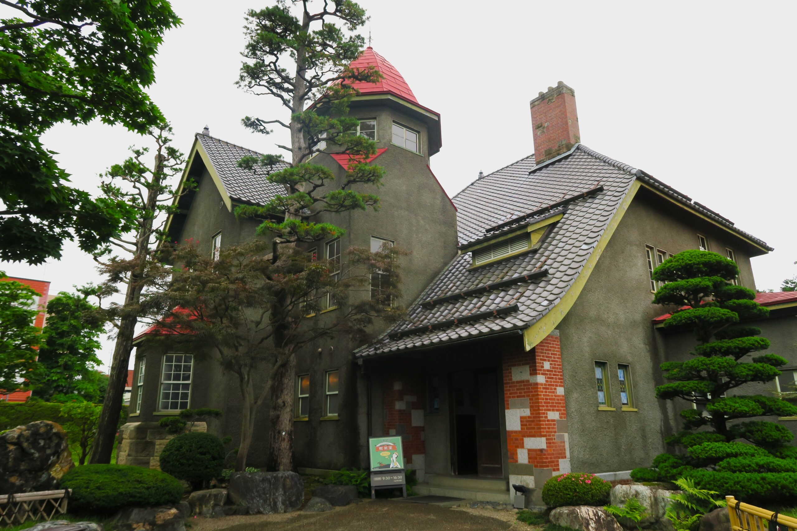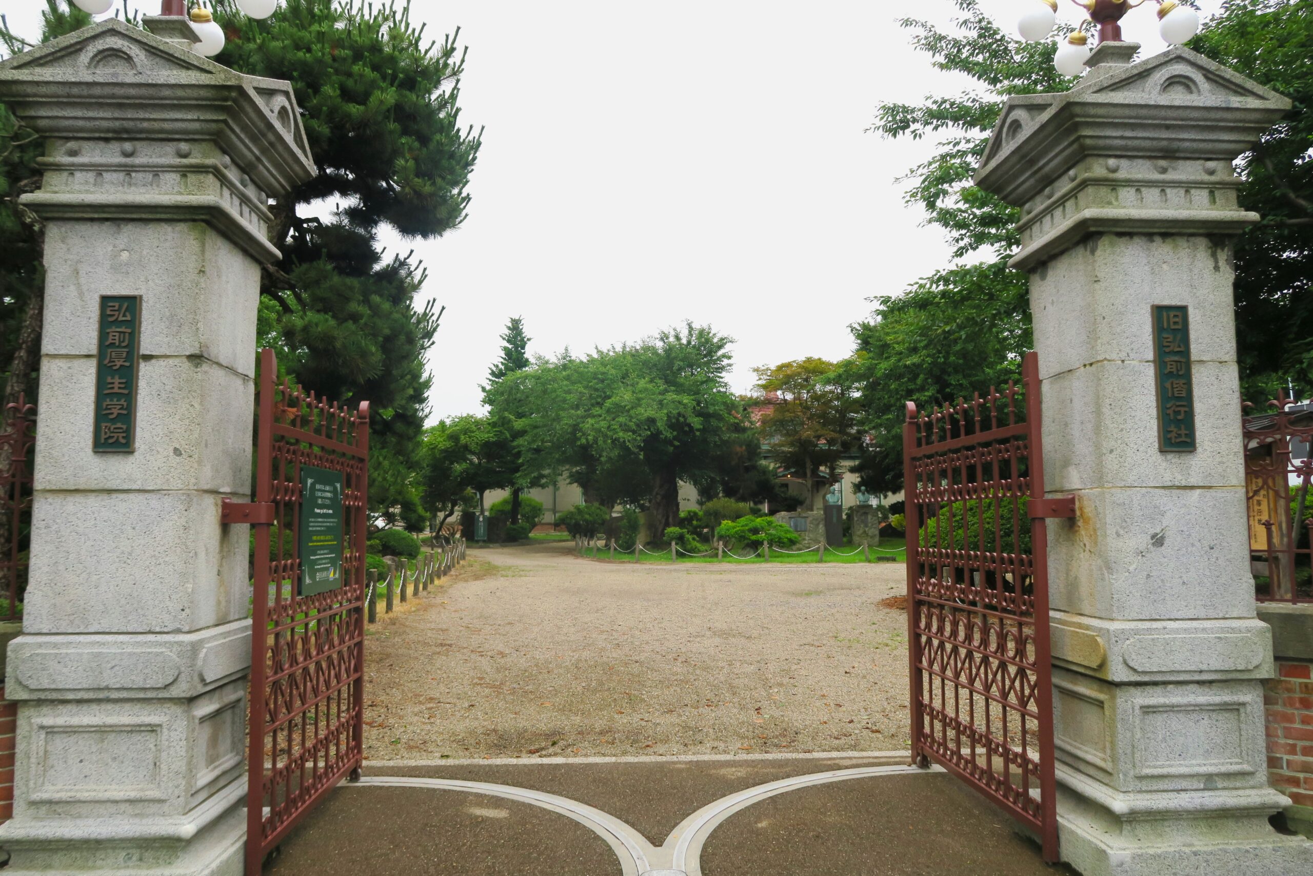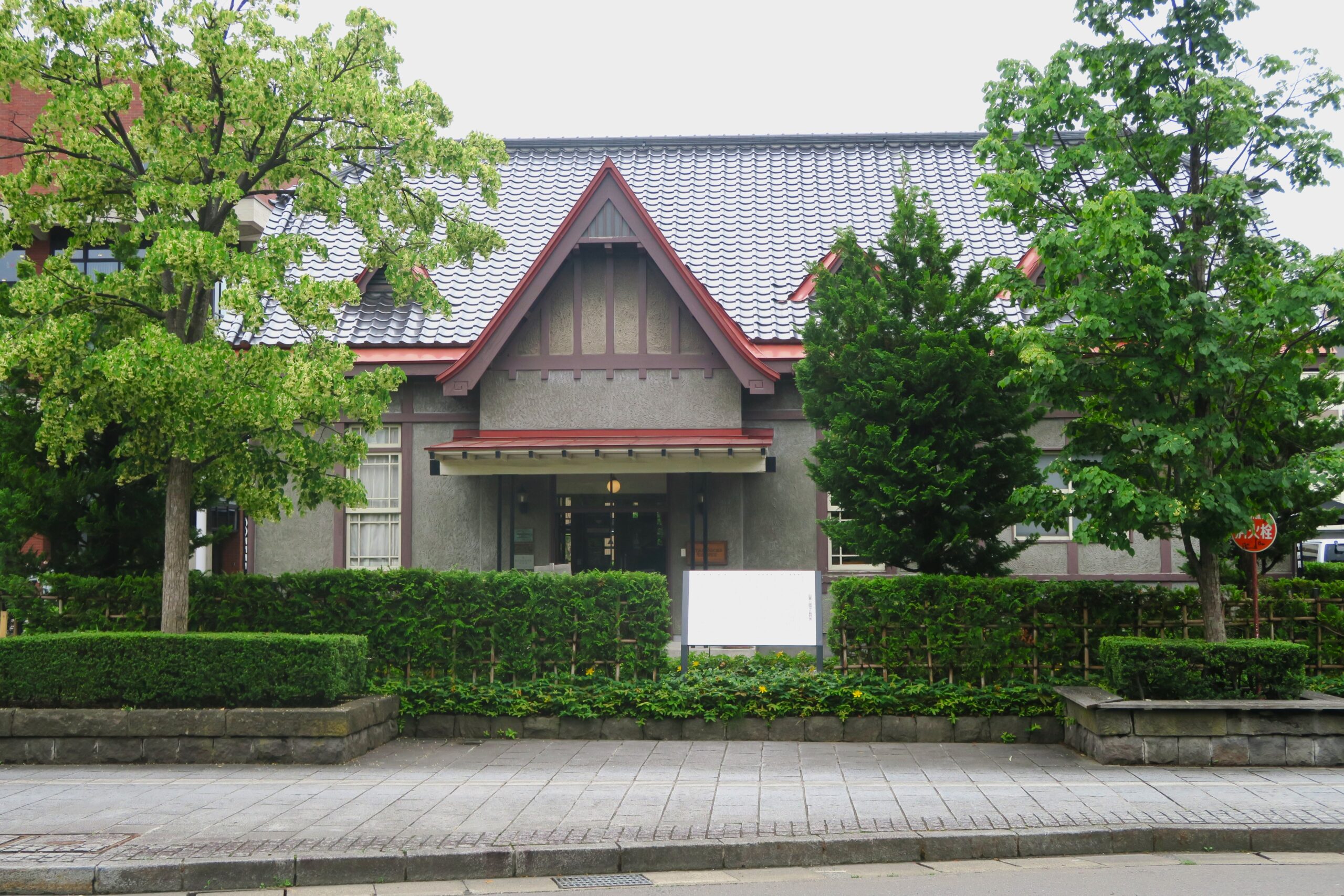 明治の初め、日本各地を旅して『日本奥地紀行』を著いたイザベラ・バードに「カレッジ」と称えられた津軽藩の藩校であった稽古館を母体に、最後の津軽藩主津軽承昭の資金援助を得て、明治5年(1872)に創立されたのが青森県初の私学・東奥義塾です。プロテスタントの宣教師でもあった東奥義塾の外国人教師たちが弘前に移り、彼らの住居だったのが隣接する「旧東奥義塾外人教師館」で当時の生活ぶりが味わえます。明治33年(1900)に同校の宣教師ジョン・イングが所属していたアメリカのメソジスト・ミッションボードで設計されたのを堀江健吉らが建てた外国人教師専用の住居で煙突やベイウインドウが味わい深いです。外壁は下見板張りで、整然と並ぶ窓が印象的です。
