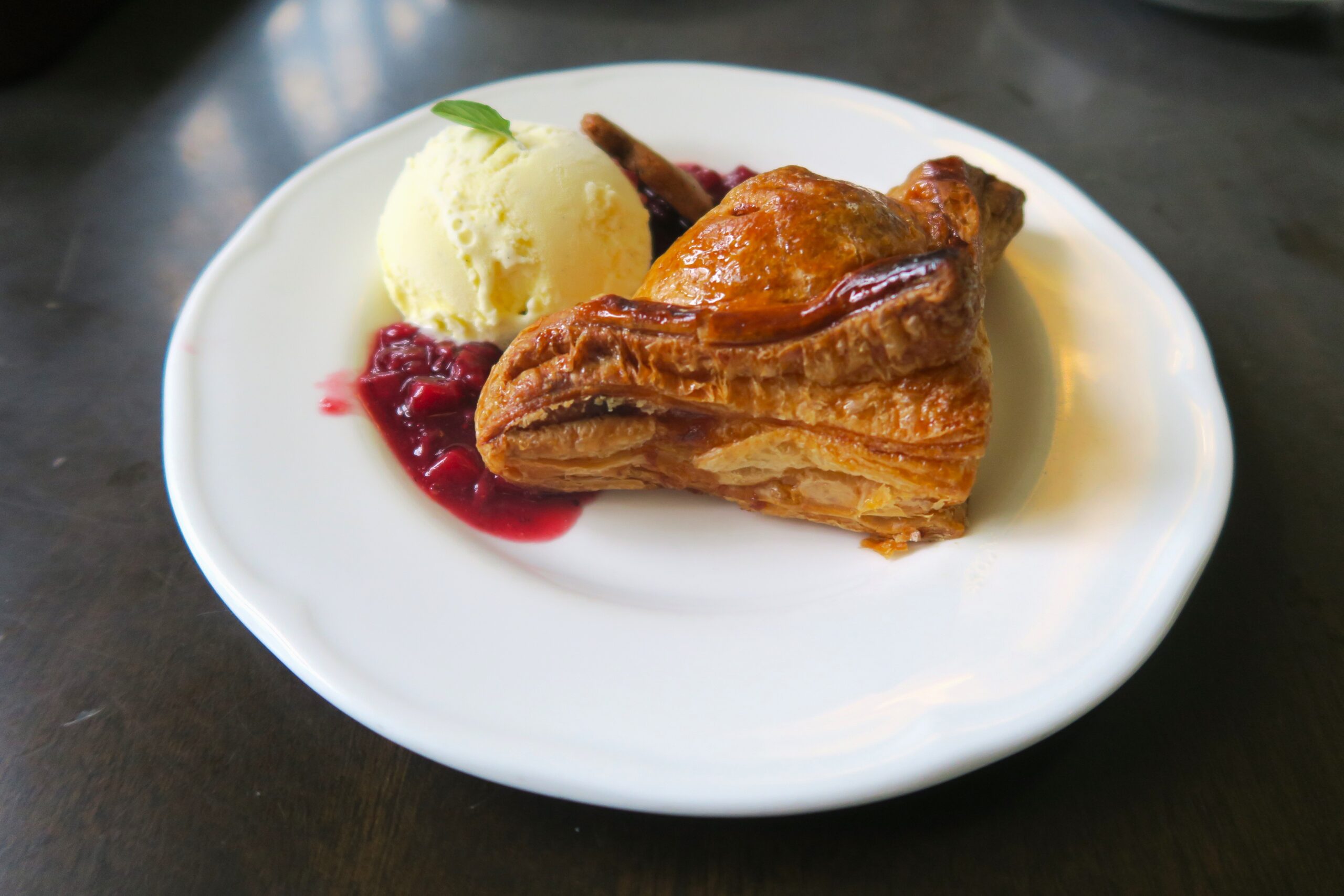 もうひとつは、特製のパイ生地に青森県産の“ふじ”の果肉をたっぷりのせて焼き上げている「オークレール」のアップルパイです。爽やかな甘みの果汁が口いっぱいに広がります。