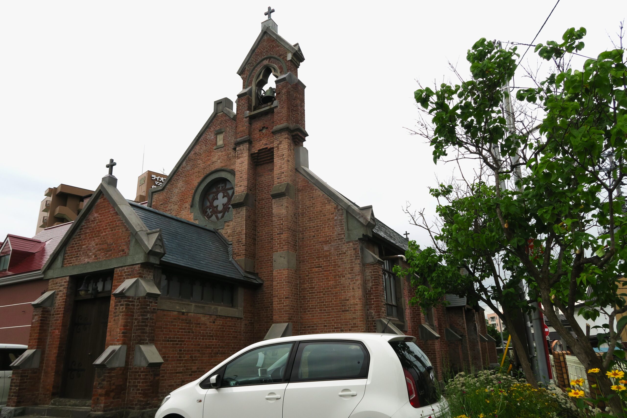 弘南鉄道大鰐線・中央弘前駅駅前にあるのが風格漂う建物が印象的な「日本聖公会 弘前昇天教会」は、明治29年に弘前に伝道された聖公会の教会で、大正10年(1921)に建てられ、愛知県明治村に遺る聖ヨハネ教会と同じく、明治・大正の教会建築に活躍した米国人ジェームス・M・ガードナー設計で施工はクリスチャン棟梁・林緑です。レンガ造りの平家建で、全体がゴシック様式にまとめられていて、イギリス積みのレンガ、開口部廻りと控壁上の水切りに用いた石材など建物の重厚さを出している。正面右寄り上部の三葉飾りのアーチにある鐘は、朝夕の祈りの時間に清澄な音で時を告げています。