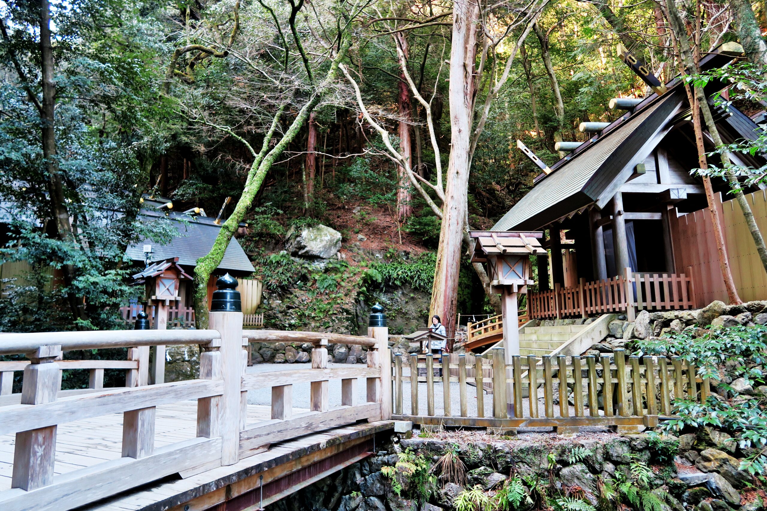 最奥部左手に天津彦根命を祀る本宮「多度神社」があり、木々に囲まれた場所に静かに佇み、その左手には滝が流れ落ち、神聖な印象を受けます。向かい合って右手に別宮「一目連神社」があり、天津彦根命の御子神・天目一箇命を祀ります。岩戸隠れの際に刀斧・鉄鐸を造られたとあります。清らかな風と水の音、木々の香りに心が癒されます。