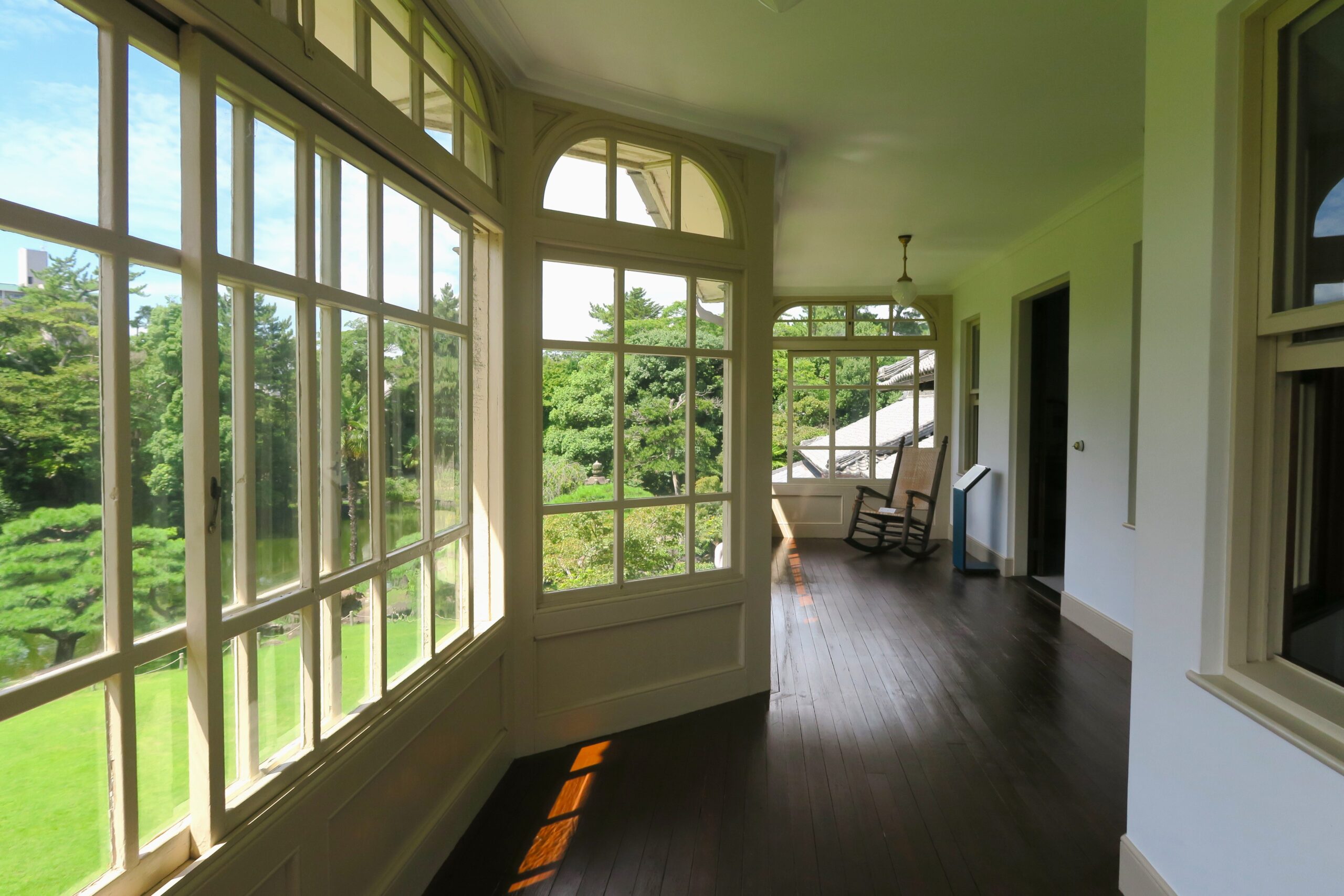 桑名のNo1ロケ地になっていて、近年主な作品でも「いだてん~東京オリムピック噺~」「人間失格」「太陽は動かない-THE ECLIPSE-」「黒井戸殺し」等、時代物からサスペンスまで映画やドラマ20作品以上になります。2階のサンルームから見える庭園の景色は絵画のようです。