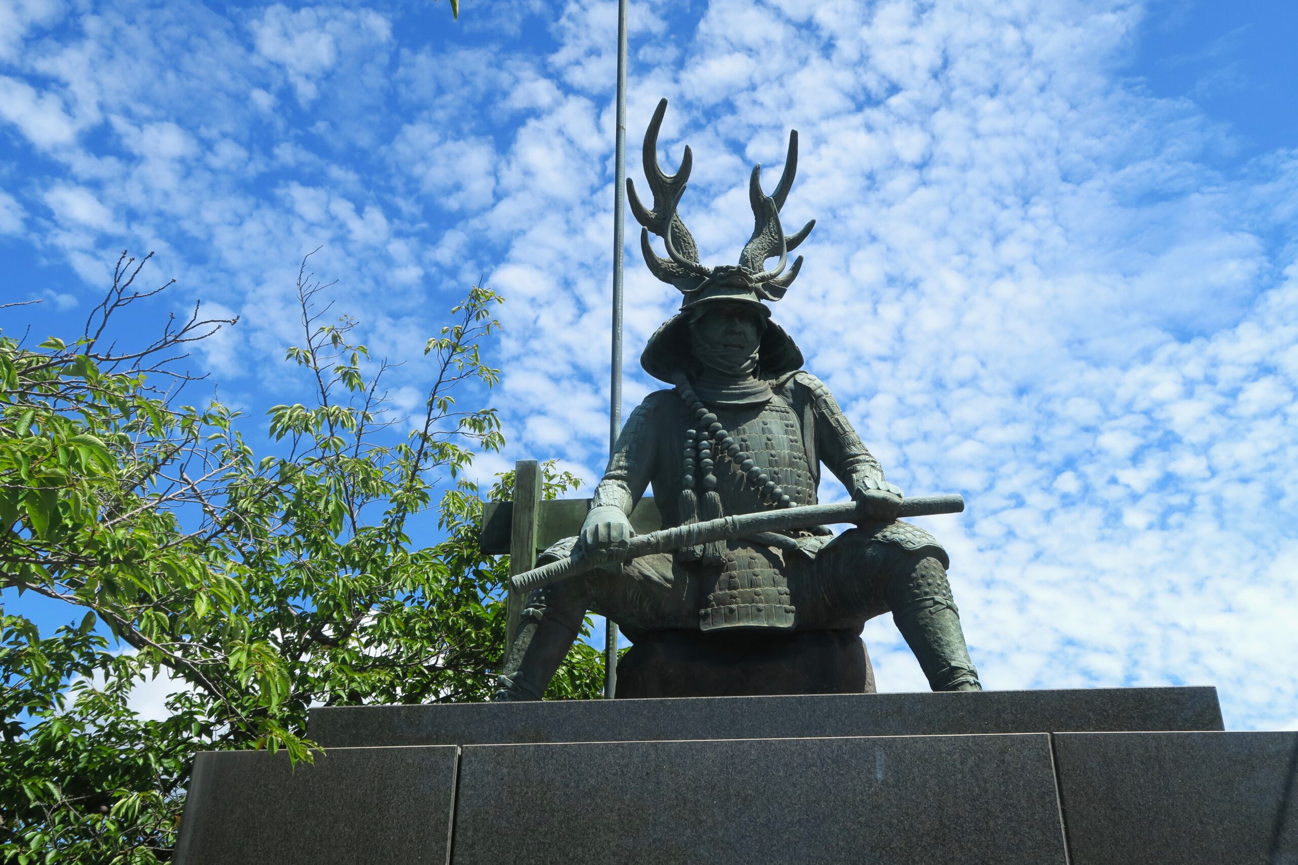 鹿の角を象った兜をかぶり、6mもある大槍「蜻蛉切」を手にした本多忠勝銅像を仰ぎ見ながら挨拶をして桑名城本丸と二の丸跡に造られた九華公園に向かいます。関ヶ原の合戦後、慶長6年(1601)徳川四天王と言われた戦国最強武将・本多忠勝が築いた桑名城は、揖斐川を利用した水城で、かつて最大95の櫓を有する「海道の名城」と称えられました。