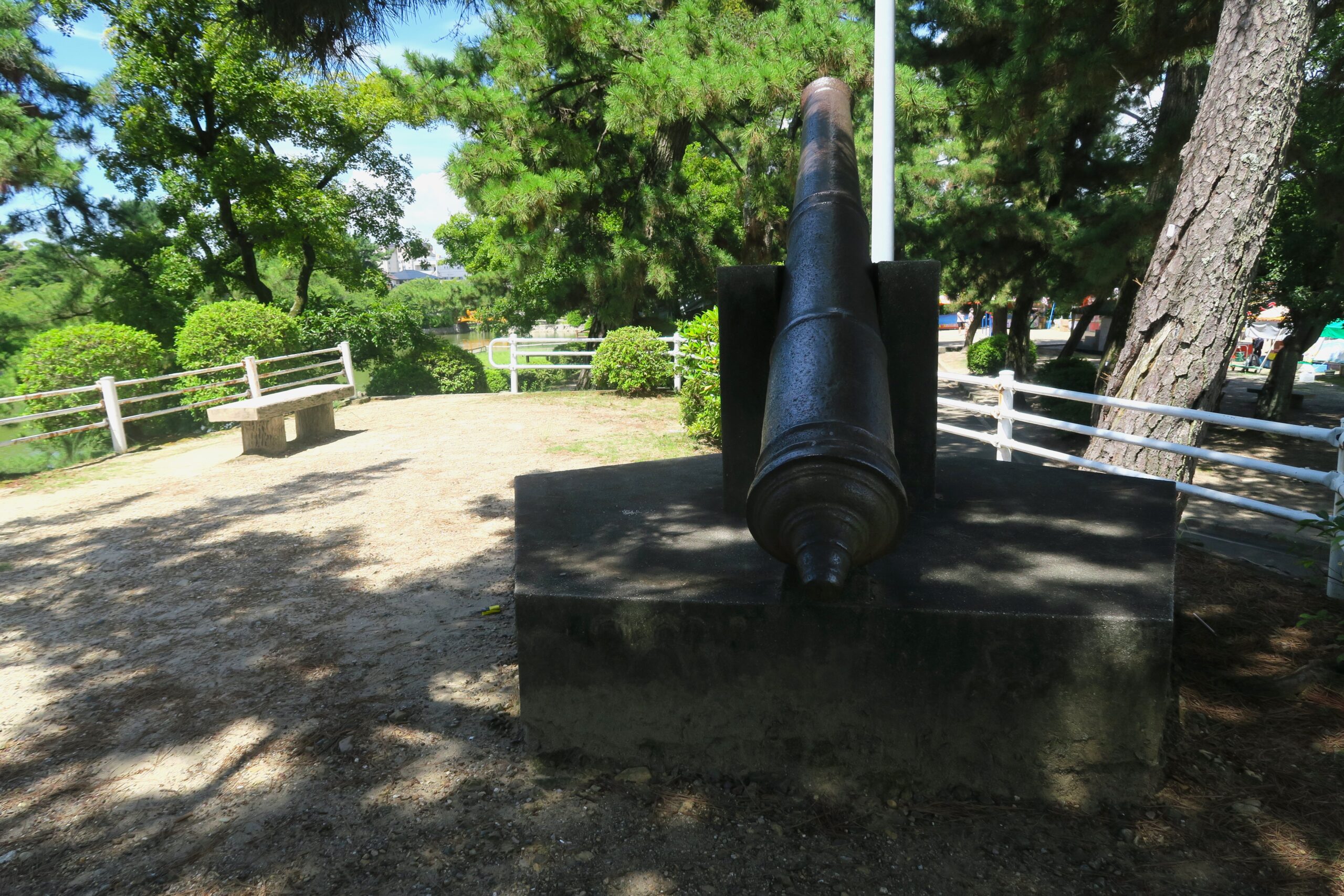辰巳櫓は桑名城本丸の東南角にあった三重櫓で、元禄14年(1701)天守閣が焼失後は、この辰巳櫓が桑名城のシンボル的存在でした。なぜ現在大砲が置かれているかは由来等不詳です。