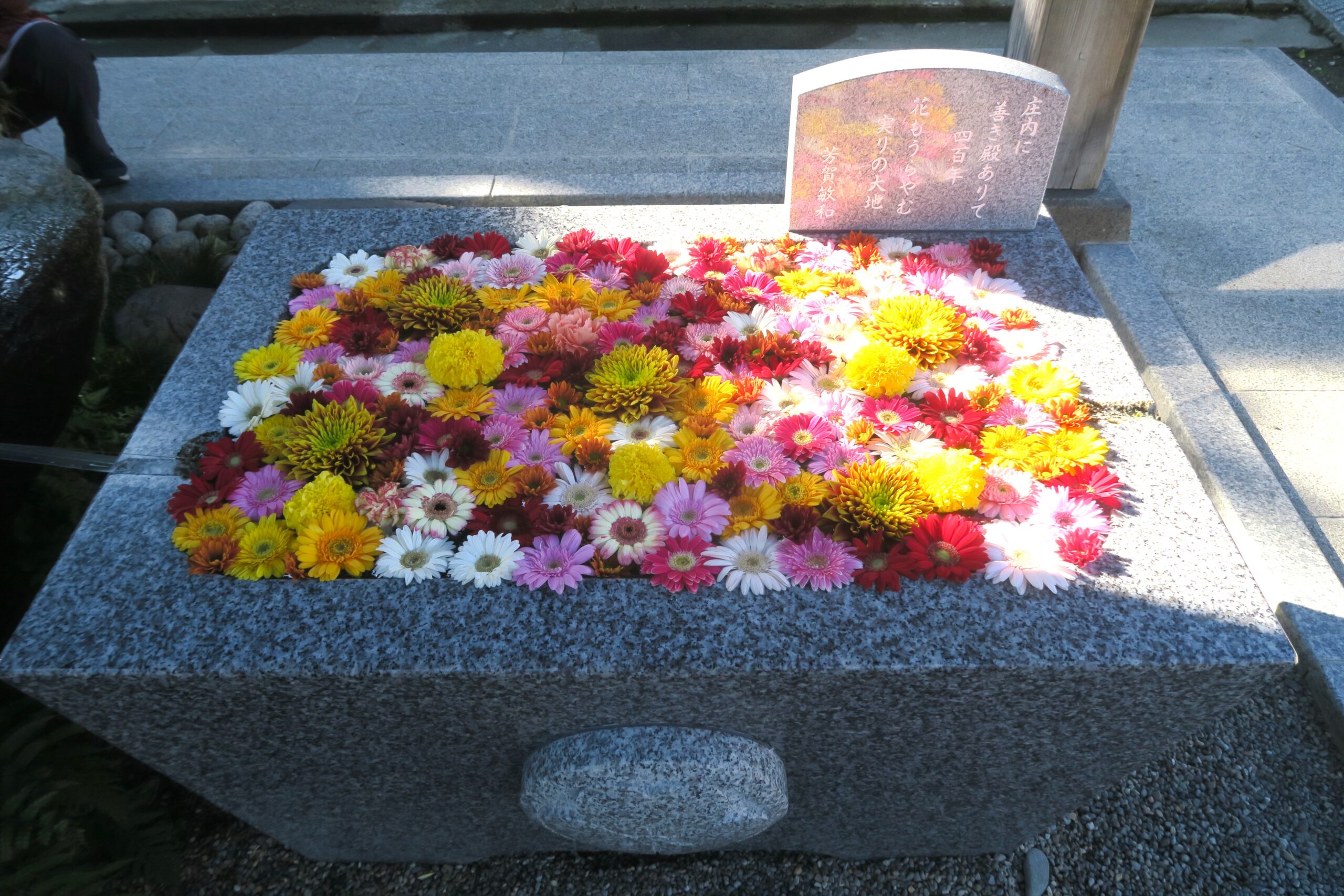 庄内神社の花手水鉢。感染対策として手水の使用を禁止したのをきっかけに誕生しました。