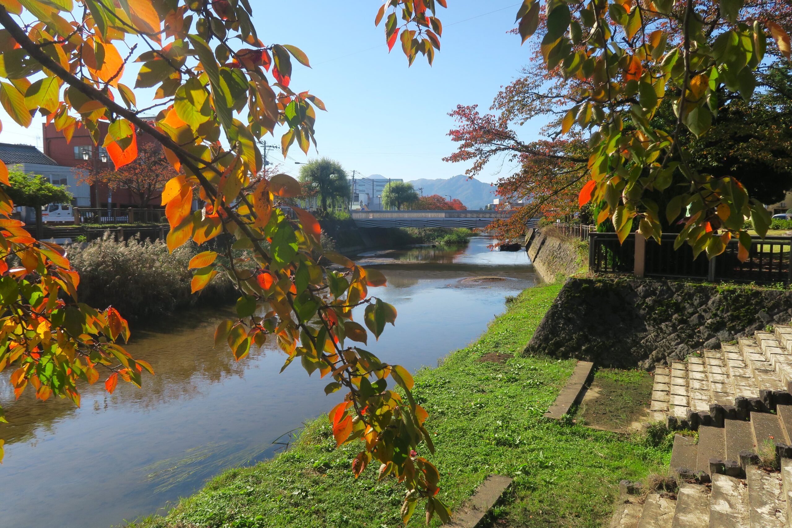 さらに内川沿いを北へ進みます。内川は『蝉しぐれ』では「五間川」の名で登場します。鶴岡は西に青龍寺川、町中に内川が流れ、お城の外堀の役目を果たしていました。写真は開運橋から下流の千歳橋に向かって撮ったものですが、ここから月山、鳥海山、金峯山の三山を眺めることができます。