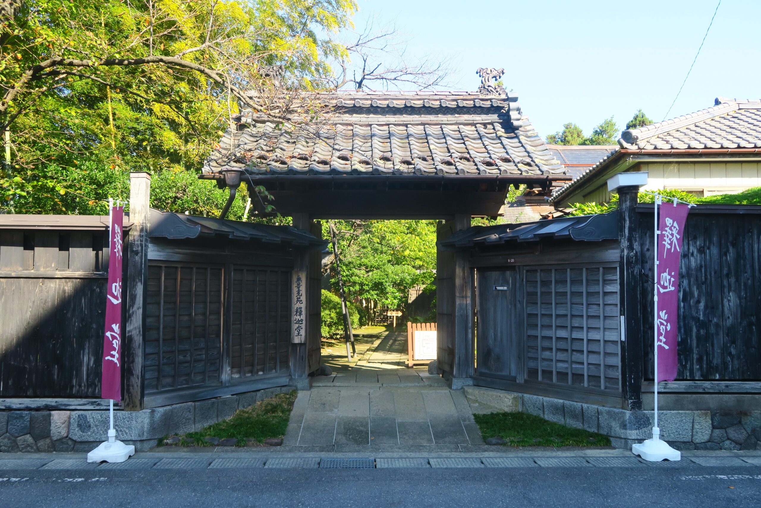 丙申堂より約50m北に位置するのが風間家旧別邸「無量光苑釈迦堂」です。良質の杉材を使った数寄屋風建築で明治43年(1910)、丙申堂の別邸として建てられました。建築時から上座敷に「無量光」と書かれた額が掲げられ、現当主が床の間に御石仏釈迦像を安置したことから名付けられました。無量光とは、阿弥陀仏の発する十二光のひとつで、無限の恵みをもたらす光明の意といいます。800坪以上ある庭園は必見。