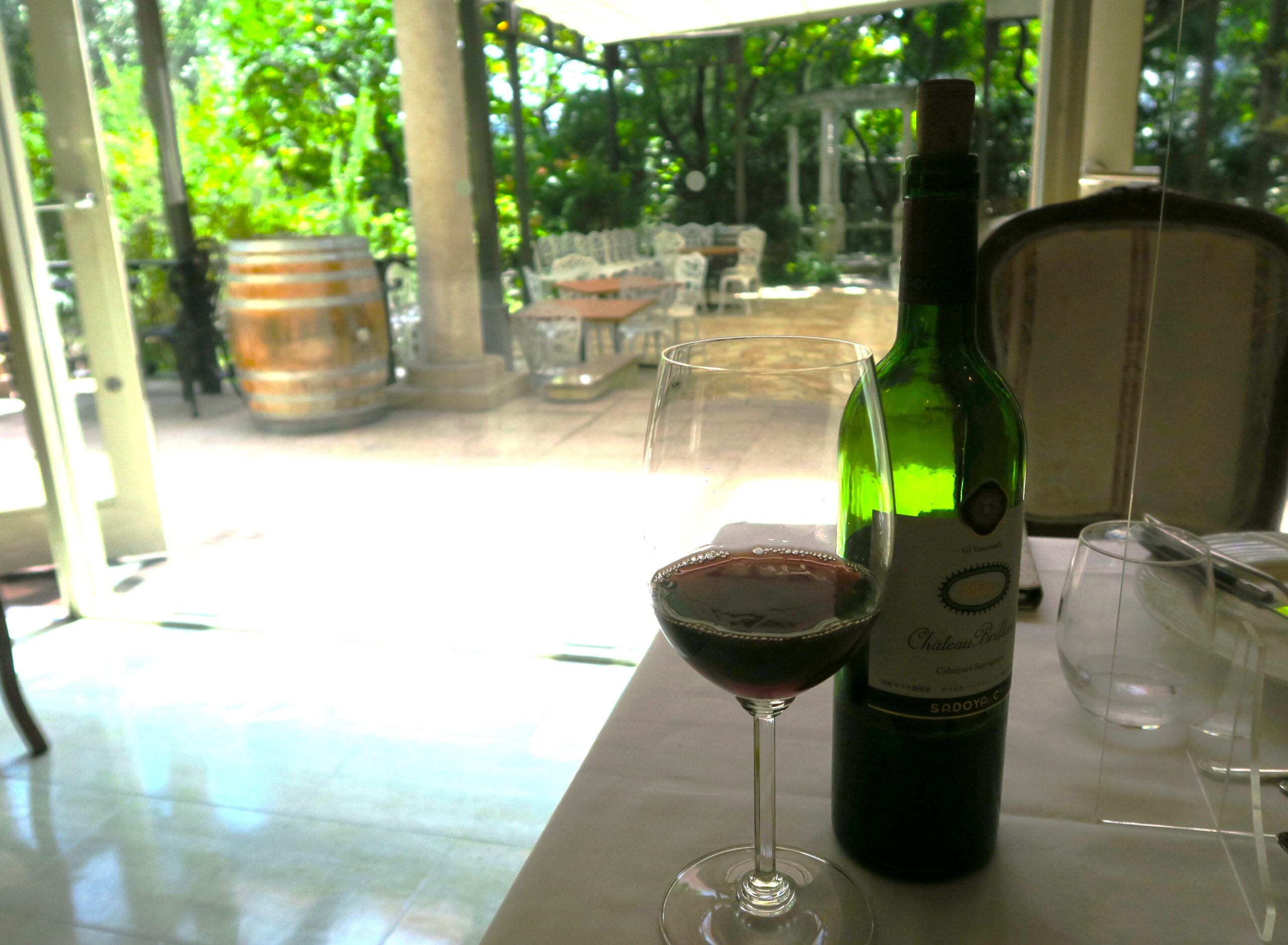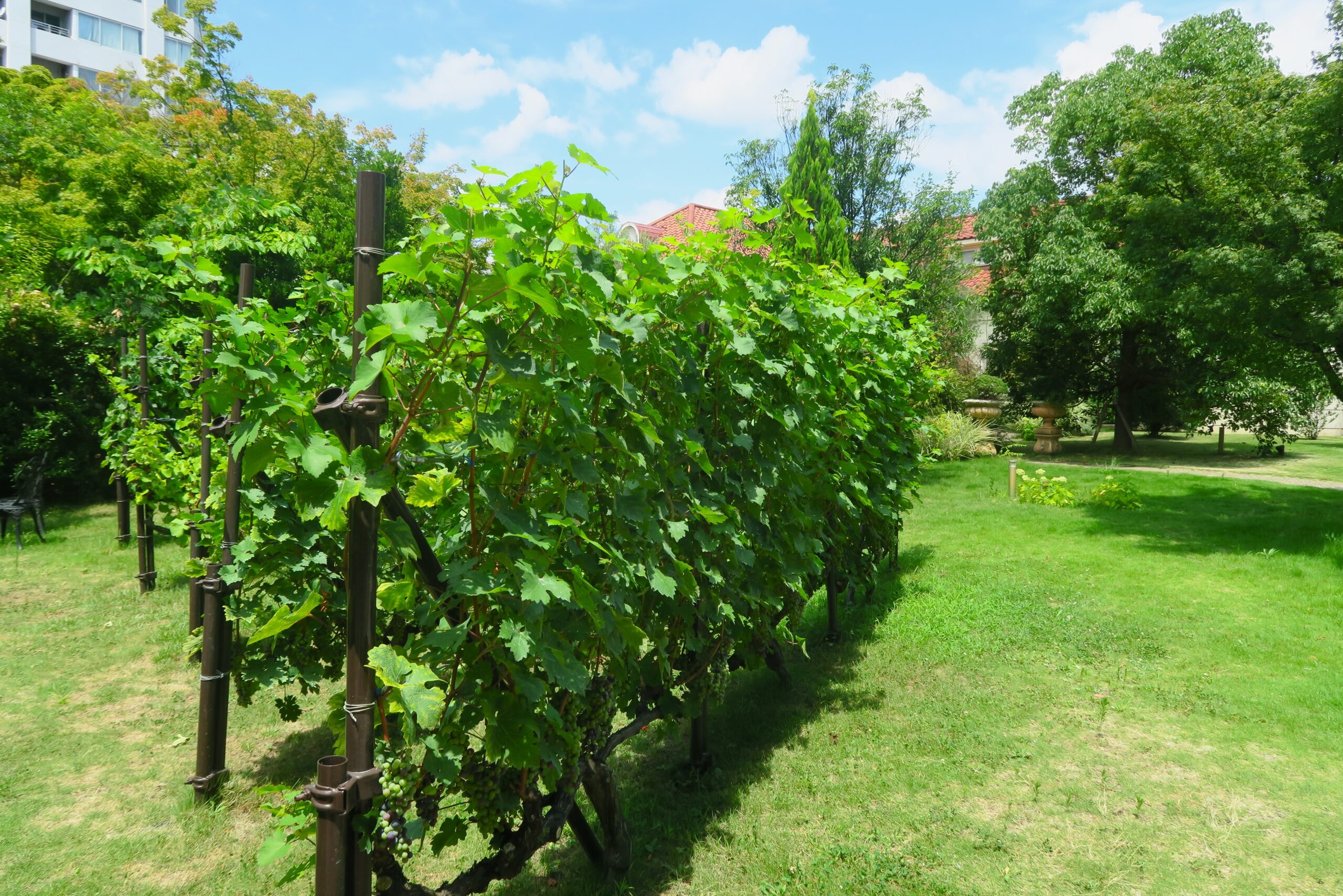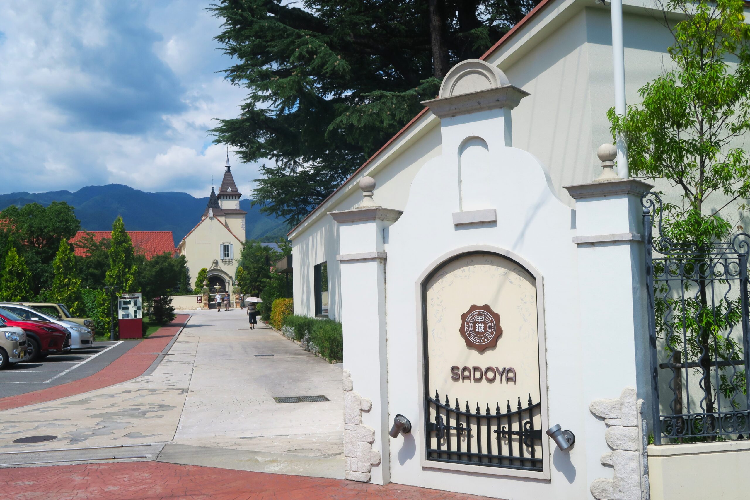 歩くこと5分のところ、街中のぽっかりと異空間のようにあるのがワイナリー「サドヤ」です。江戸時代から続く油屋「佐渡屋」を明治42年(1909)「サドヤ洋酒店」へ転業、大正6(1917)年「サドヤ醸造場」として創業し、国内でいち早く地場産ブドウを使用したワインの醸造・販売を手掛けてきました。昭和11(1936)年には甲府市善光寺町にサドヤ農場を開墾し、フランスよりワイン醸造用品種の苗木を植え、以来カベルネ・ソーヴィニオン種、セミヨン種を中心に自家農園産ブドウによるワインづくりを続け、本格的な辛口ワインを醸造しています。ワイン漫画「神の雫」40巻では「日本三大シャトー」に数えられています。