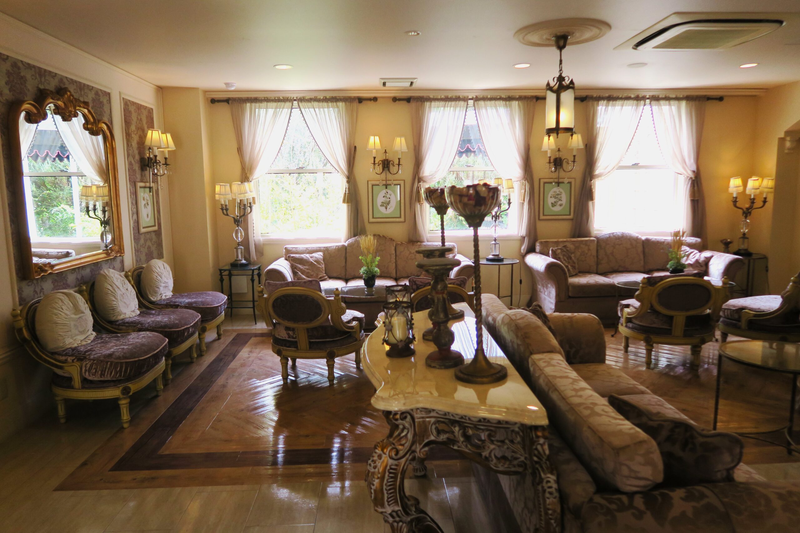 邸宅の入口を入ると待合スペースがあります。食事前にゆっくりと寛げる落ち着いたベージュ色のトーンの中、座り心地のよいソファにゆったりと体を沈めて食事への期待に心躍らせながら待ちます。