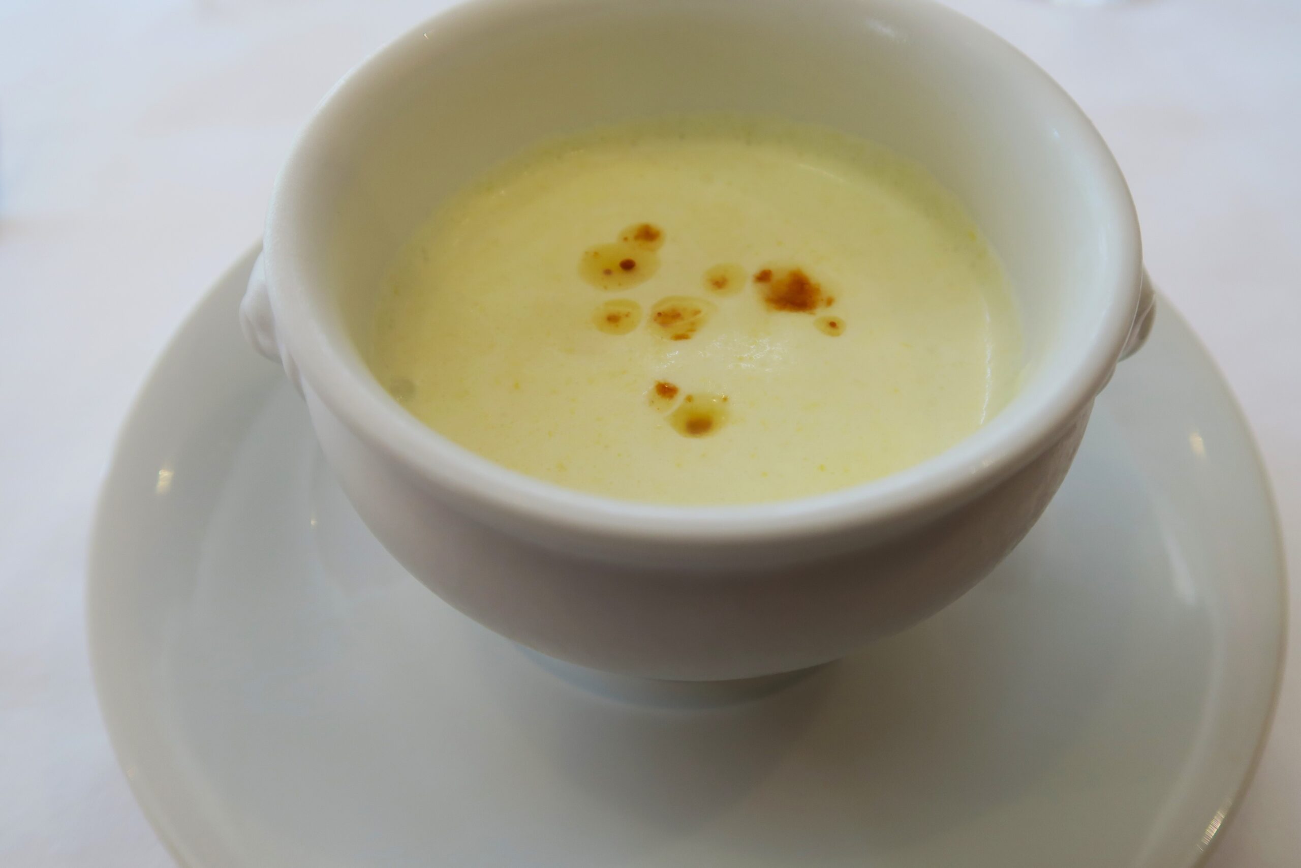 スープは「とうもろこしのポタージュ 焦がしバターをのせて」で、すごく甘く、焦がしバターがよいアクセントになっています。