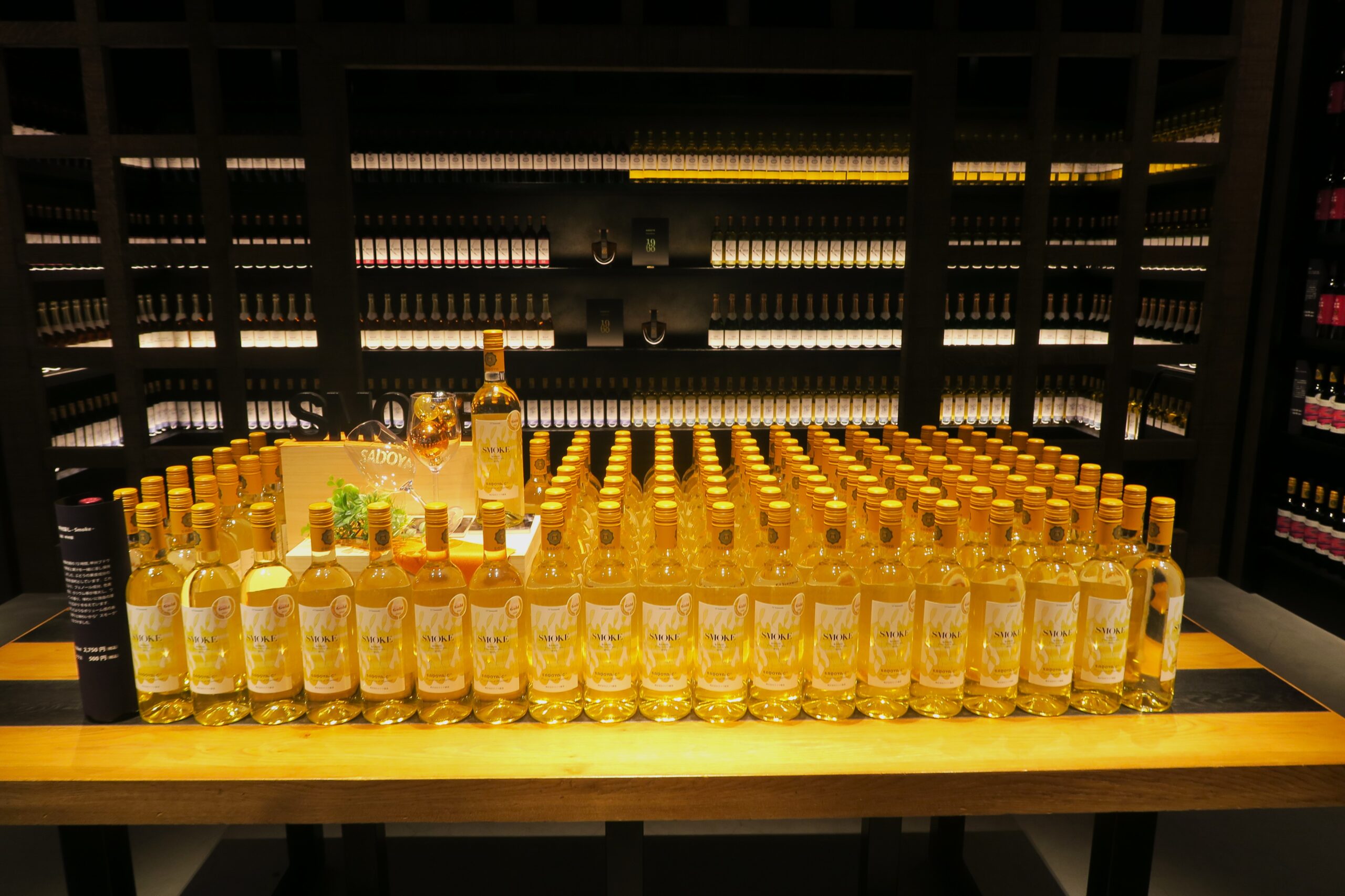 日本固有のブドウ品種・甲州の発祥は奈良時代とも平安時代ともいわれ、長い歴史を誇ります。古くから生食され、明治時代からはワインの醸造にも使用されてきました。片や日本の食卓には幅広い味わいが混在し、そんな日本食にあう、新しいスタンダードとなるワインを甲州で作りたいと考え、オレンジワインが赤・白・ロゼに続く第4のワインとして近年注目されていることから、ブドウの果皮に多く含まれる色素や香りを活かすため、オレンジワインの醸造方法で甲州を醸しました。「SMOKE」と名付けられた「甲州醸しスモーク」一見通常の白ワインのようですが、口に含んだ瞬間、白ワインとは確かに違う柑橘や杏などの香りとふくよかな果実味、フレッシュな酸味が絶妙はミディアムボディの辛口に仕上がっています。日本の食卓に寄り添うワインとなっています。