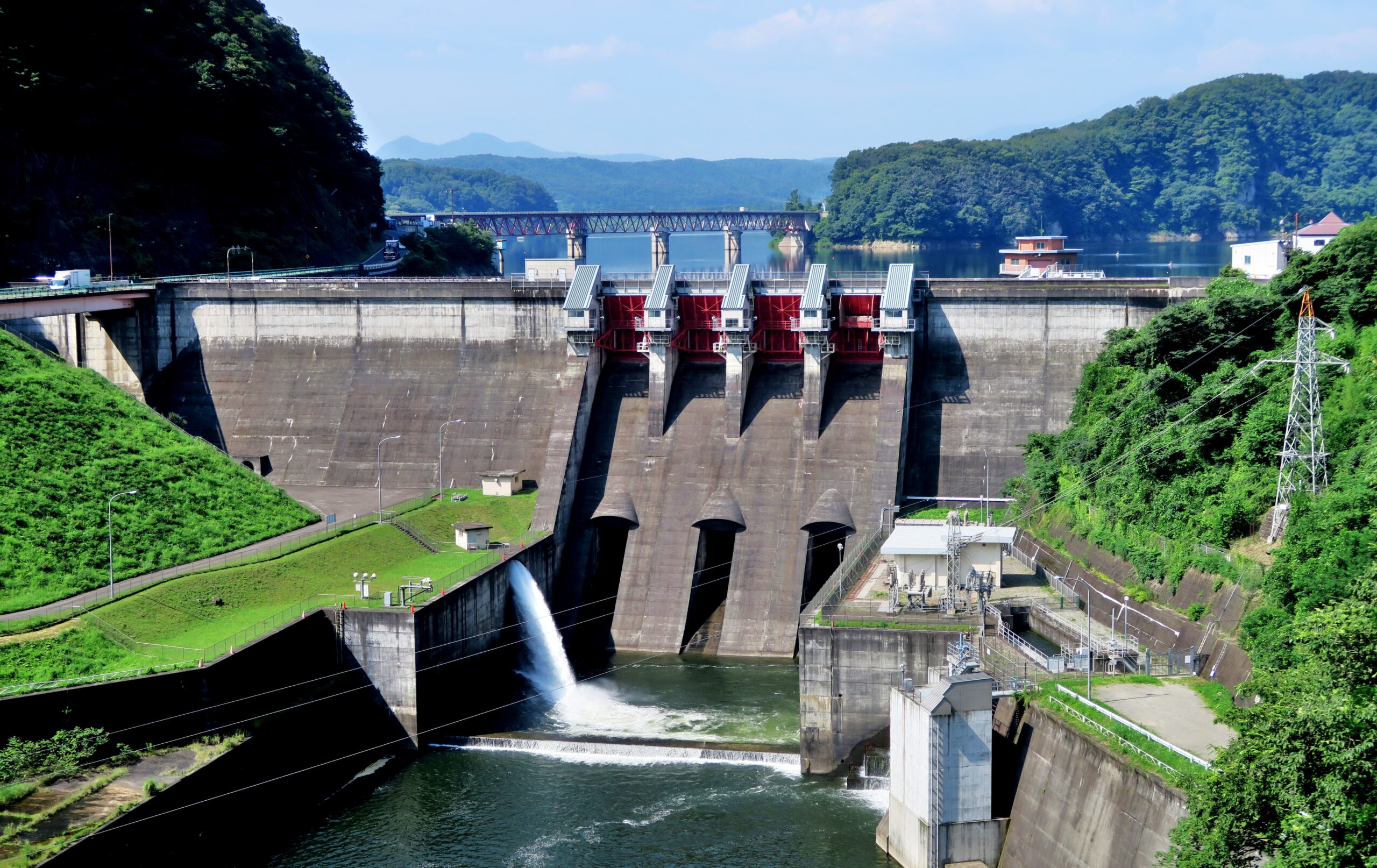 磊々峡から県道160号でさらに南に車を走らせると「釜房ダム」があります。周辺は「国営みちのくの杜湖畔公園」として整備され、国営公園になった最初のダムです。名取川水系碁石川に大倉ダム完成の流れの中で昭和45年(1970)に完成した重力式コンクリートダムです。