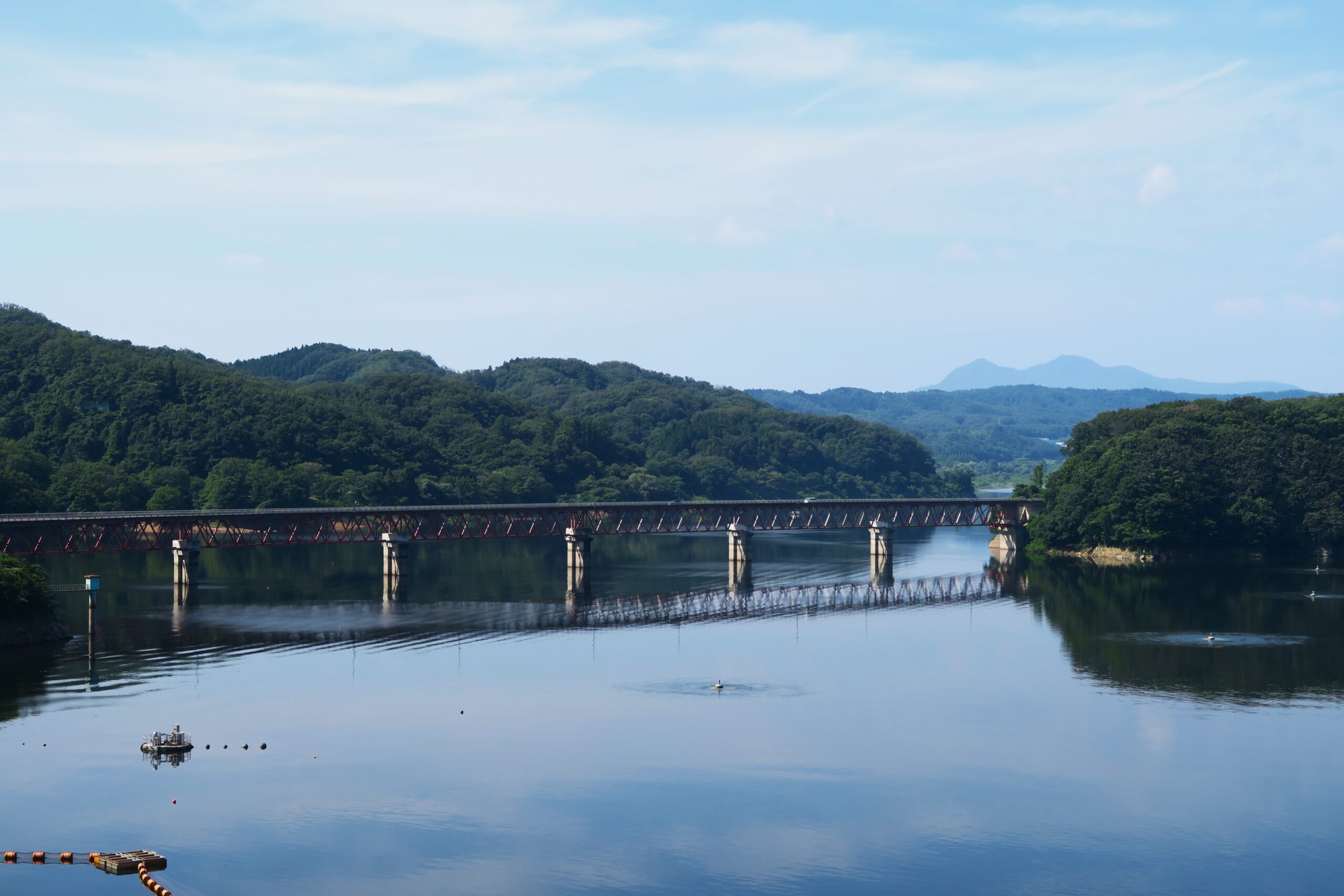 ダムによってできた人造湖は釜房湖と命名され「ダム湖百選」に選ばれています。中間に半島を持つことで二つに分かれた奥行きの広い形状をなしていて、湖畔から見る蔵王連峰の遠望は素晴らしいの一言で、みやぎ蔵王三十六景に選ばれています。
