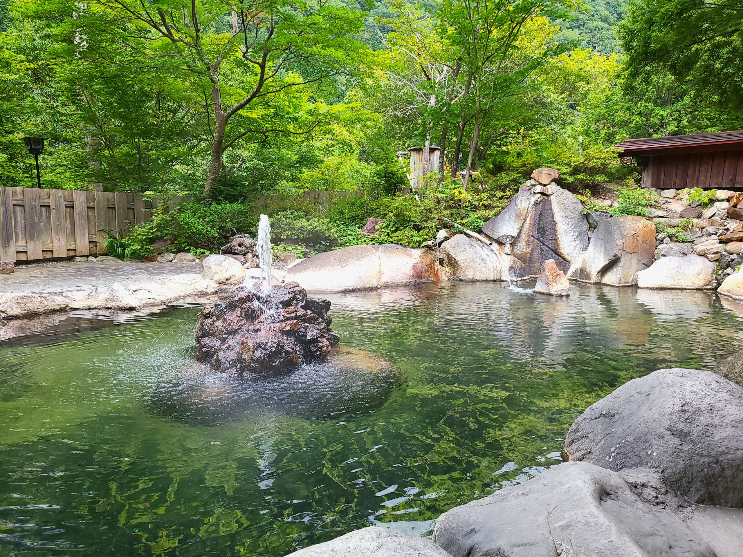 周囲は地獄谷とも呼ばれ源泉の宝庫で、河原の随所で温泉がブクブクと湧き、湯気が立ち昇っていて、かなり熱いところもあるので油断は禁物です。
