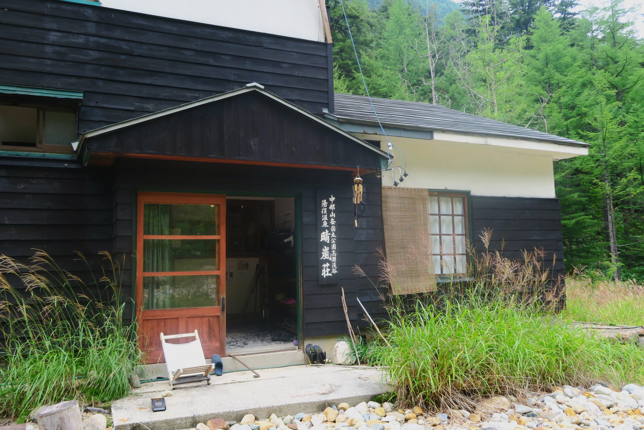 標高1430m堂々とした佇まいの晴嵐荘は、高瀬川上流、槍ヶ岳を源とする水俣川と鷲羽岳方面から流れる湯俣川が合流する渓谷沿いにある湯俣温泉の一軒宿。本館は昭和33年(1958)に再建された当時の木造モルタル2階建ての建物で、お昼の食堂だけの利用もでき、無理に河原で裸にならなくても敷地内の泉質が単純硫化水素泉の源泉を使用する内風呂も利用できます。