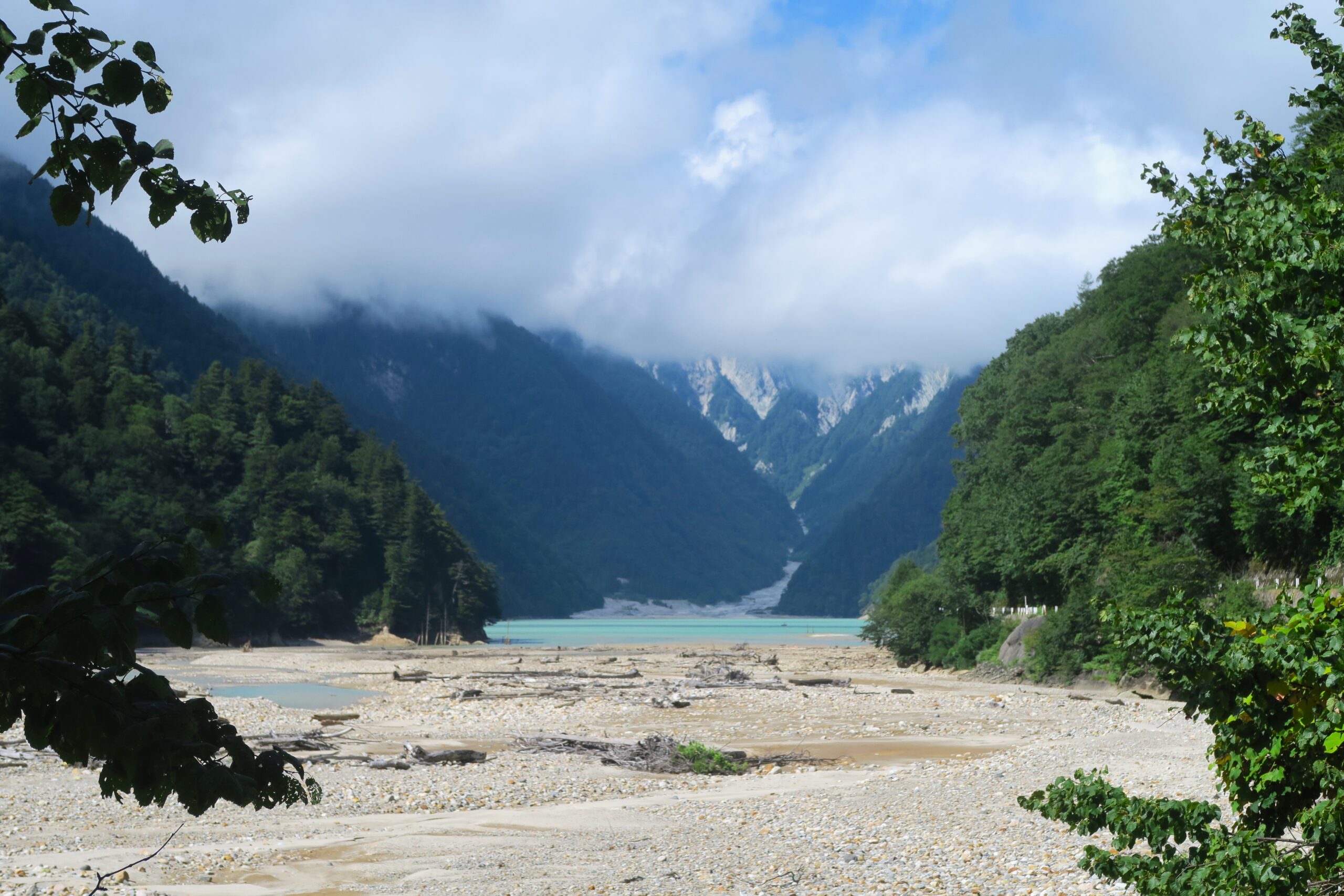 長野県大町市は北アルプスの峰々が顔を並べる山岳観光地。そんな北アルプス表銀座と裏銀座に挟まれた高瀬ダムから遡り、約3時間かけて目指すのは絶景の秘湯・湯俣温泉とその先にある天然記念物の墳湯丘です。その河原には無数の源泉があり、高温の湯を川の水で調整しながら足湯や入浴は楽しめます。現在川の渡渉点の水深は膝くらいということを確認して渡渉用の靴持参で出発です。総歩行距離21km、往復6時間の渓谷歩きです。