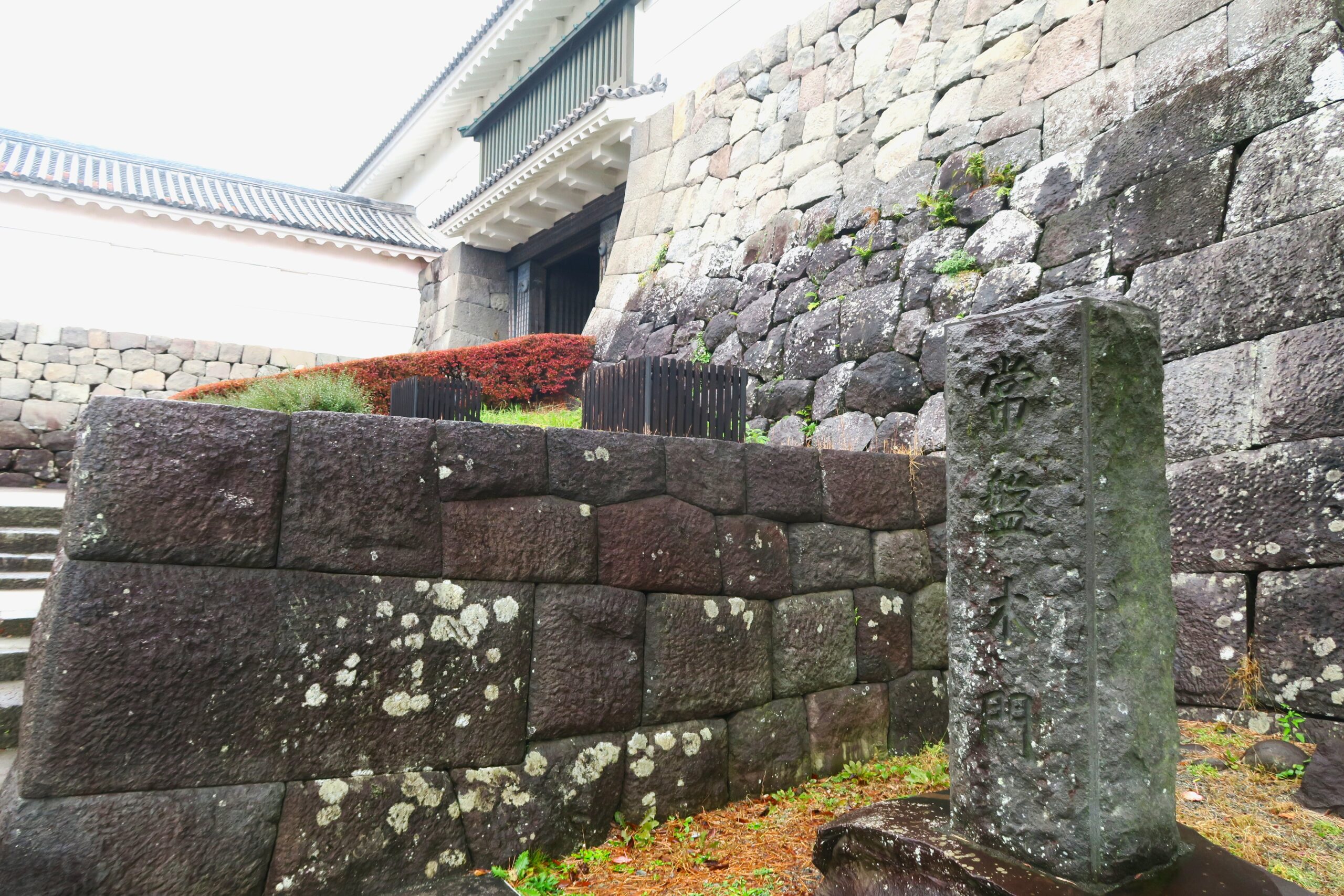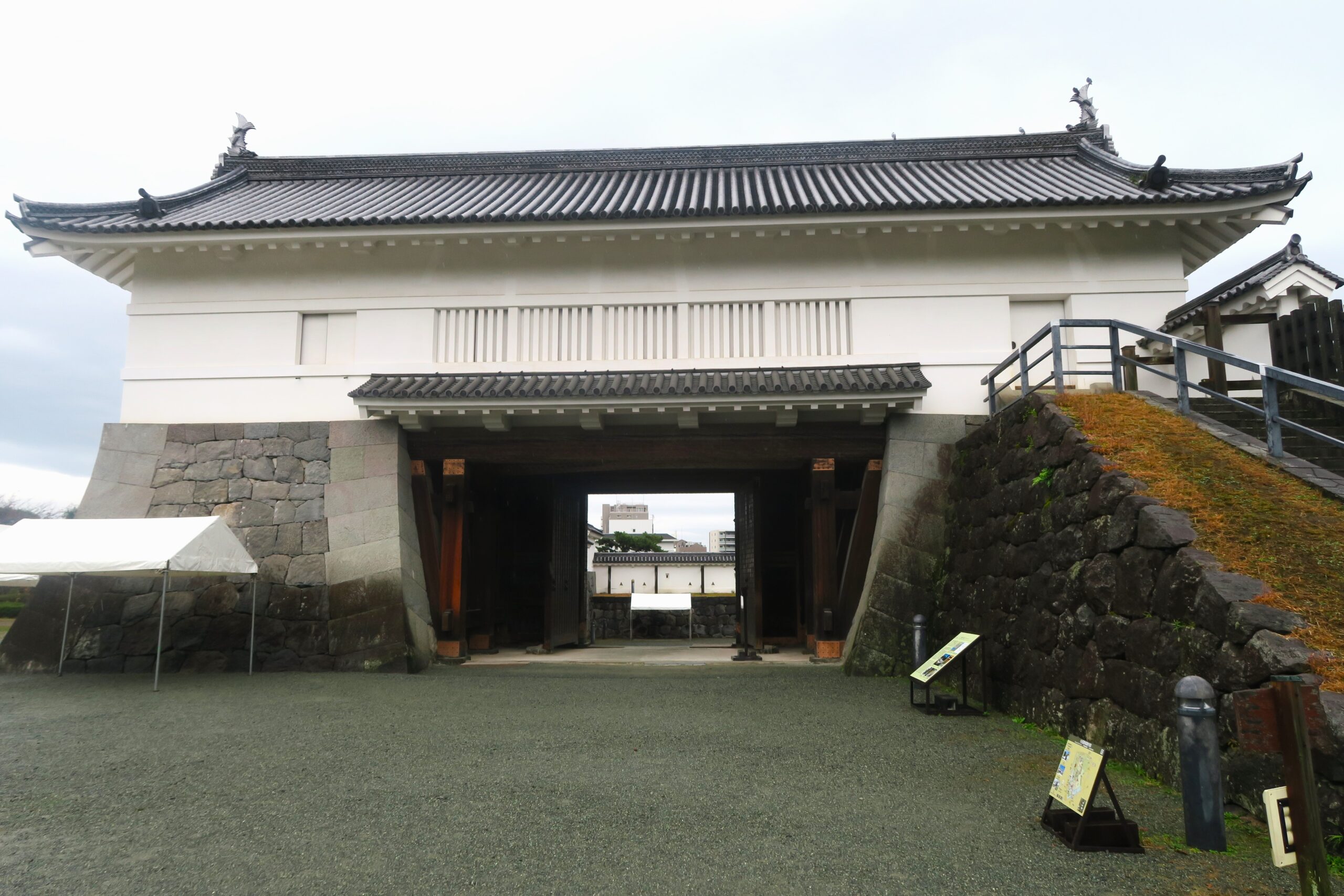 直角に曲がる枡形の構造がここでも採用され防御力を高めています。銅門は二の丸の正門に位置づけられる門で、この門を通り本丸や天守へと進むようになっていました。渡櫓門の扉の飾り金具に銅を使用していたことが名前の由来です。平成9年(1997)復元されました。