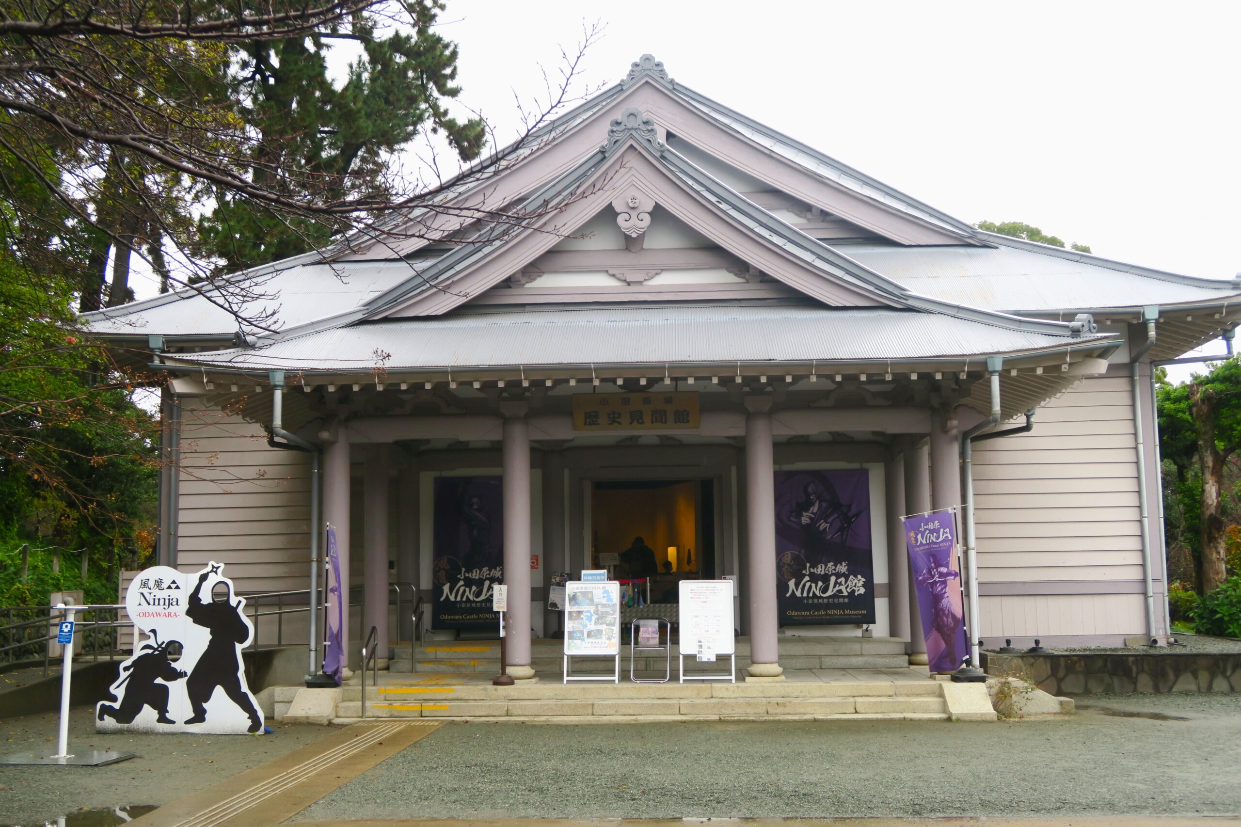 二の丸広場には昭和初期に建てられた小学校の講堂を再利用した「NINJA館(歴史見聞館)」があり、小田原北条氏に仕えた風魔忍者をモデルにした体験型の展示施設になっています。