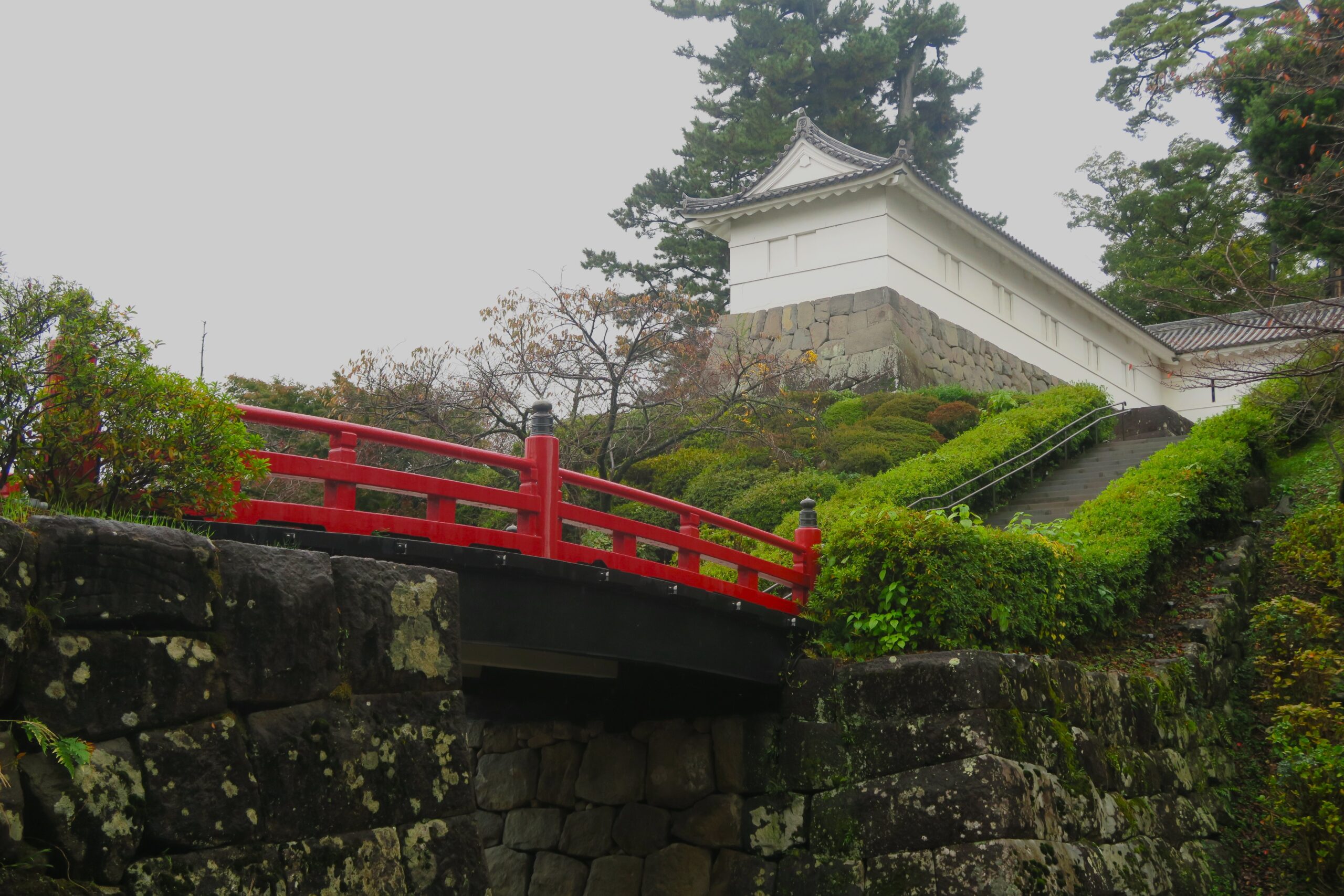 常盤木門をくぐれば天守閣がたつ本丸広場です。ここから見上げる地上38.7m、三層四階の天守櫓に付櫓、渡櫓を供えた複合式天守閣の姿は一段と美しいです。現在の天守閣は昭和35年(1960)に市政20周年記念事業として復興されたもので平成28年(2016)大規模リニューアルが行われ天守閣が真っ白な姿で蘇りました。