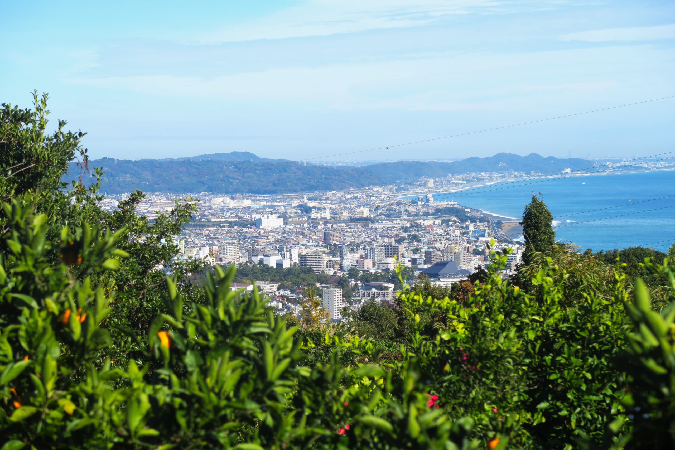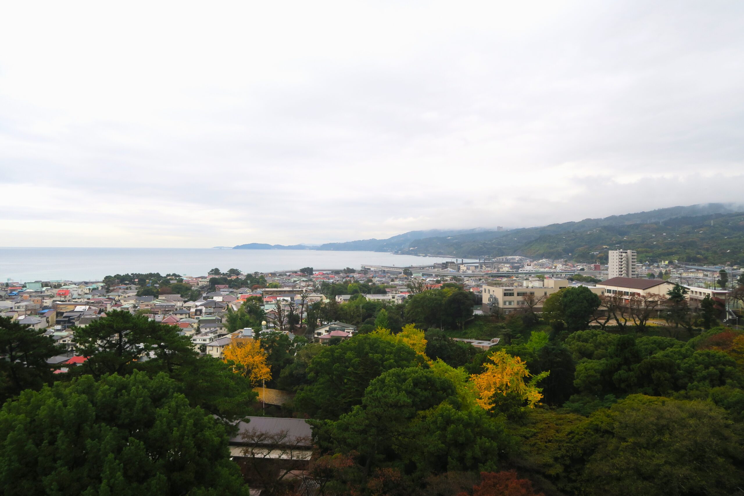 山頂から市街を眺めると小田原の地形が手に取るようにわかります。