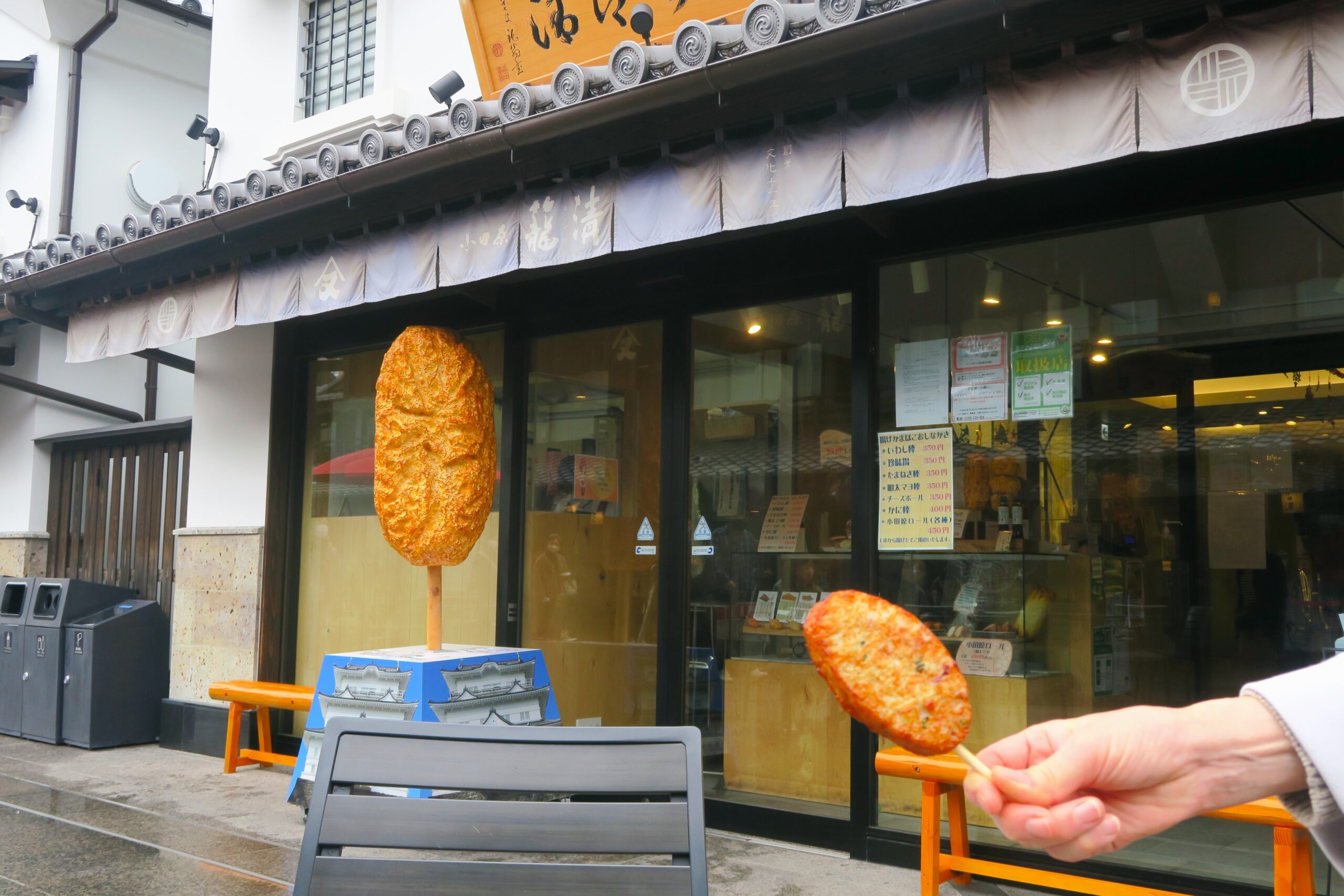 おいしそうな香りに誘われて創作煉處「籠清」で、アツアツの揚げかまぼこ珍味揚(刻み蒲鉾・イカ・ネギ)300円を購入。独自製法で作ったかまぼこを揚げてから食べやすい串に刺した、ワンハンドで食べられる揚げかまぼこは、注文してから揚げてくれるので少し待ちますが揚げたて熱々のプリプリ食感でボリュームもあり最高です。小田原名物として真っ先に名前が挙がるかまぼこは交通が不便だった昔、箱根に新鮮な魚を供給するため保存性がいい加工法が考案されたといい、海の幸や良質な湧水など、立地的に恵まれていたのも大きな理由です。TV番組「有吉クイズ(テレビ朝日)出川のドライブマイカー」でも紹介されていた籠清は文化11年(1814)創業で、鮮魚の江戸輸送を営むかたわら蒲鉾の製造をはじめ、明治40年(1907)石黒清次郎翁が屋号を籠清とし蒲鉾製造専業となっていった老舗です。