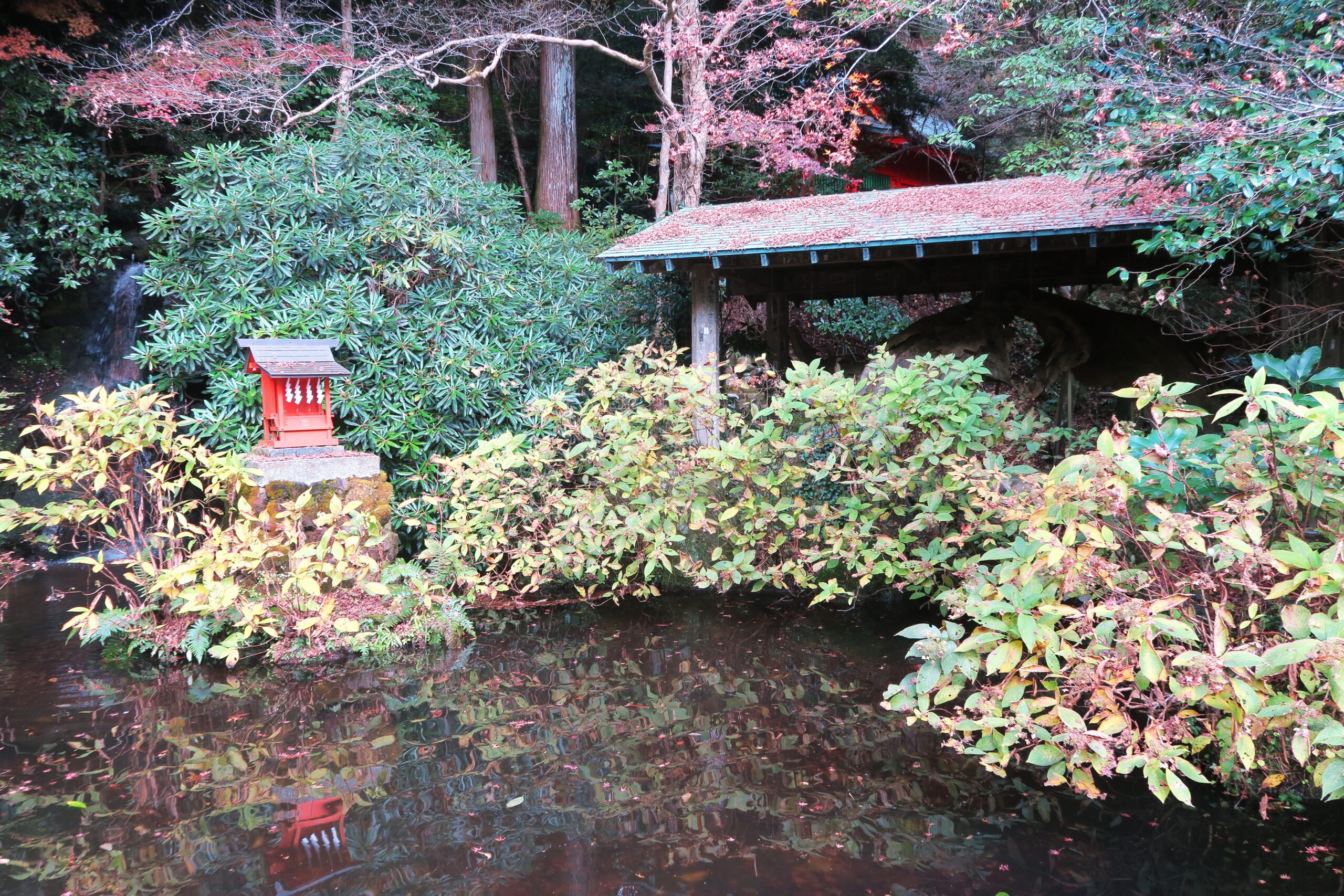 湖上には「水中鳥居」と呼ばれる湖の赤い鳥居が神秘的に立っています。
