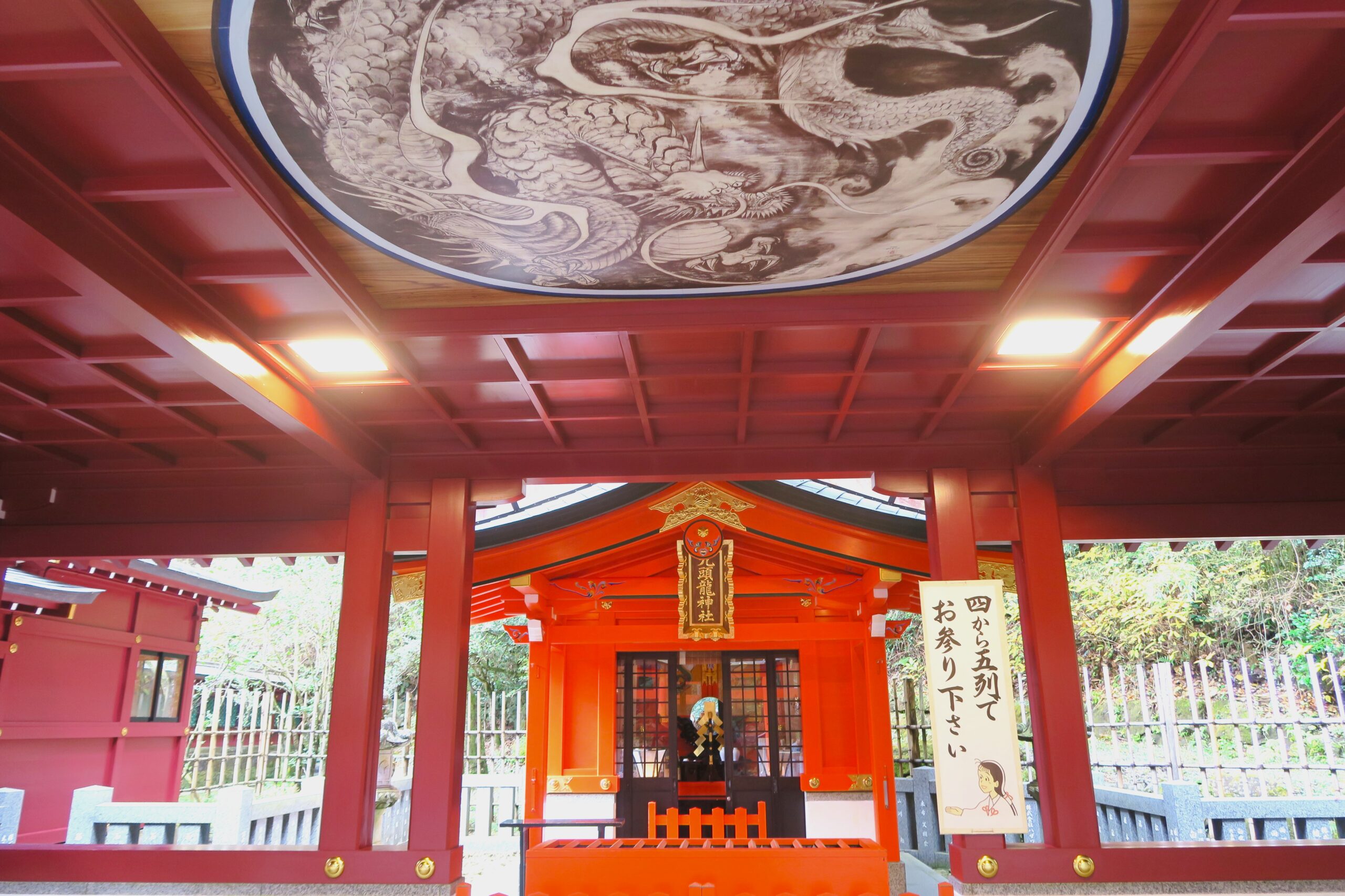 その縁起譚から「九頭龍さま」と昔から崇められ、金運守護、心願成就、商売繁盛、良縁成就などの御利益で知られるパワースポットで、特に縁結びのご神徳で知られ、毎月13日の月次祭には多くの人で賑わい、13日限定の参拝船が芦ノ湖遊覧船の元箱根港から箱根九頭龍の森内、神山桟橋間で運行されます。13日以外は行くことができない、また行くのが困難なイメージがありますが簡単にいくことができます。芦ノ湖畔のリゾート施設「箱根園」から遊歩道をたどる陸路(徒歩30分)とモーターボートで湖面を渡るルート(約5分有料)があります。