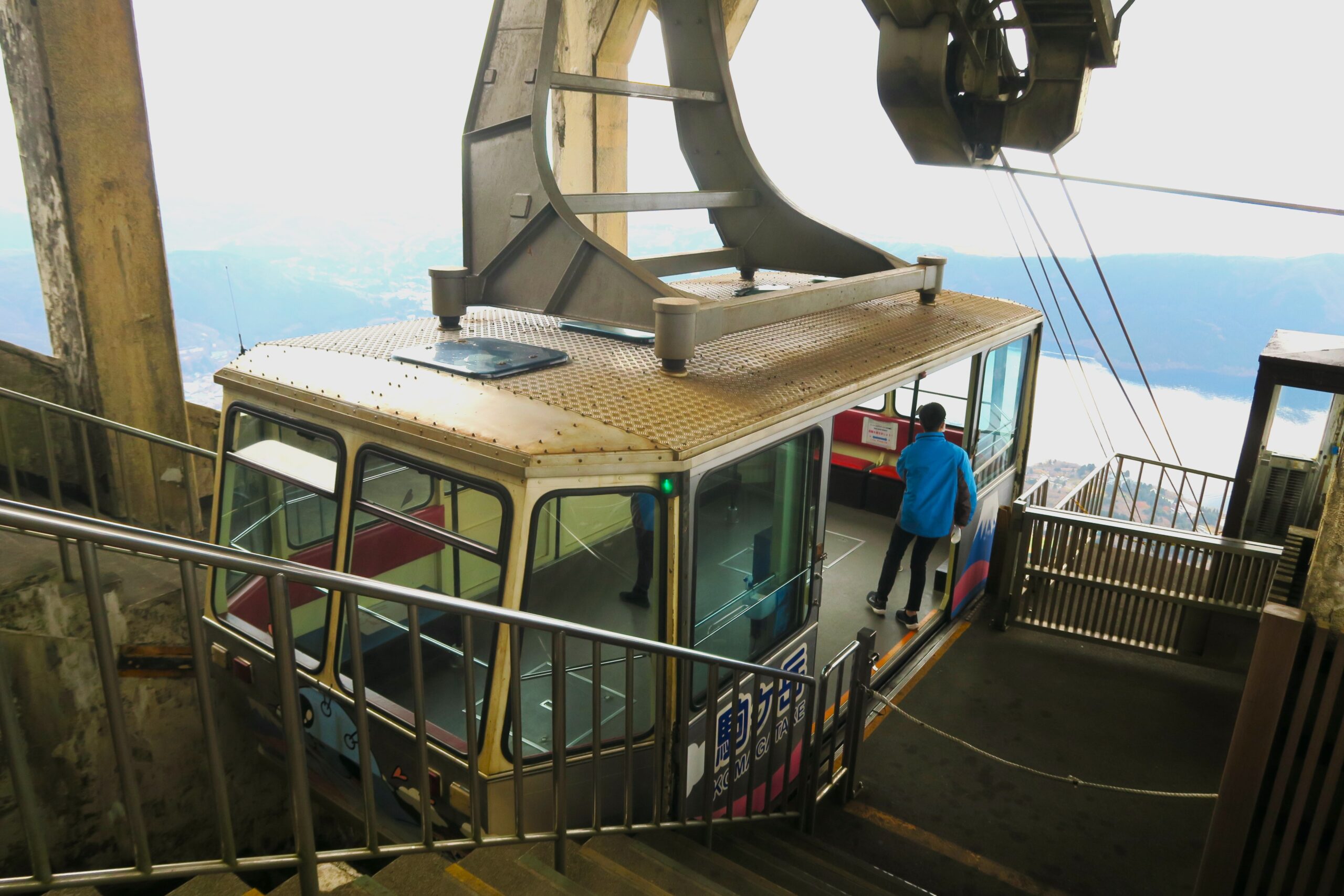 「箱根神社」「九頭龍神社」の両参りが済み箱根園戻ると、さらなるご利益を求め「箱根元宮」を加えた「三社参り」に詣でます。昭和38年4月(1963)、箱根駒ケ岳ロープウェーの開業とともに、堤康次郎の寄進によって駒ケ岳山頂に箱根元宮が再建され、以来奥宮として参拝者を集めています。芦ノ湖の湖畔・箱根園駅と駒ケ岳頂上駅を結ぶ箱根駒ケ岳ロープウェーは全長1783m、101人乗りのゴンドラが時速18kmのスピードで動き、約7分の空中散歩です。