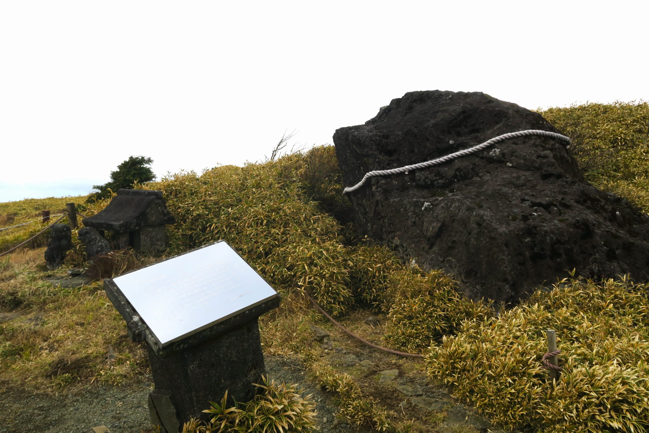 駒ケ岳山上は、カヤトでハコネコメツツジなどの風衡低木が生育し、ちょっとした高山のような雰囲気です。ここからさらに奥に見える箱根元宮を目指して10分ほど山を登ります。頂上駅前から道が二手に分かれていますが、神社の正面から参拝するために鳥居へと続く右側の道を進みます。