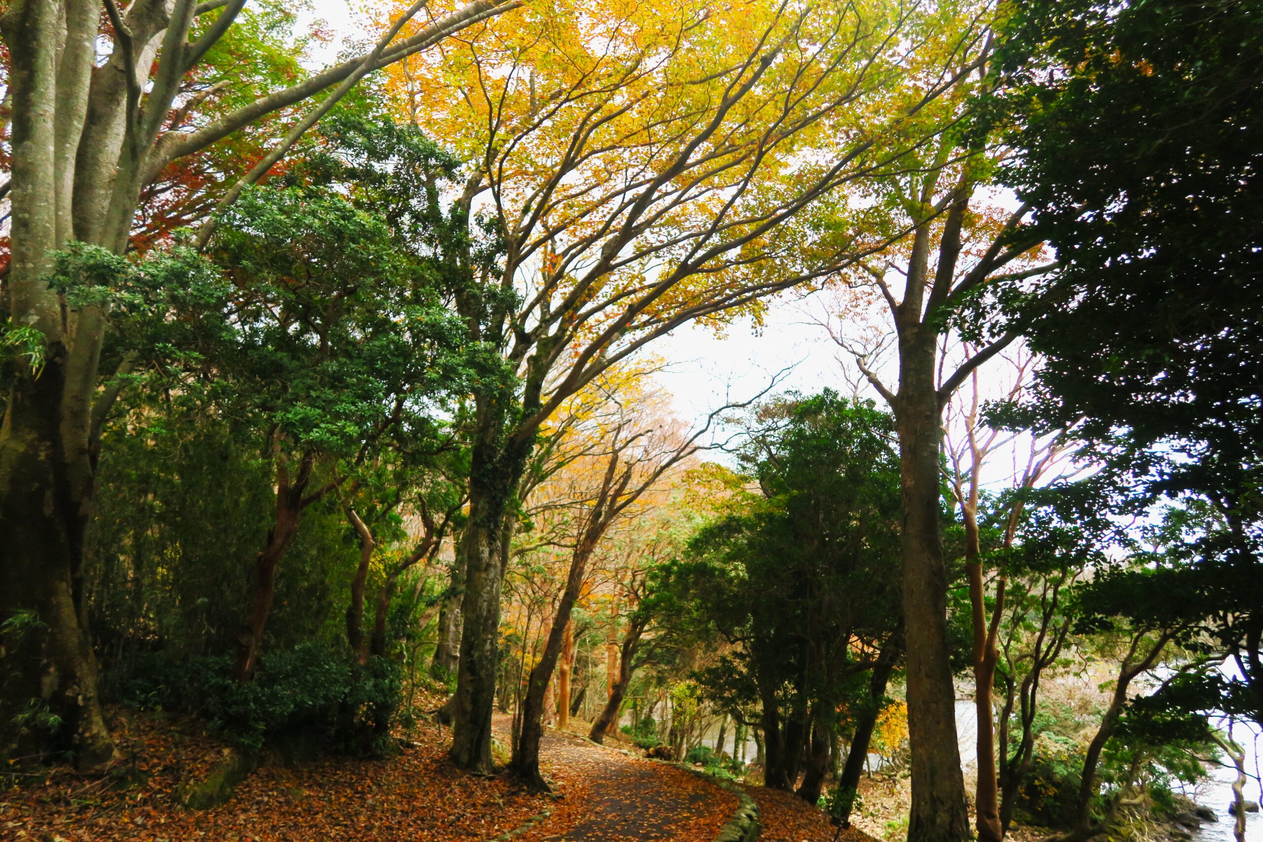 きれいに整備された芦ノ湖畔沿いの遊歩道をさらに進みます。箱根九頭龍の森には箱根の木に指定されているヒメシャラをはじめ数多くの種類の樹木が生息していて森林浴をしながら気持ちよく歩けます。