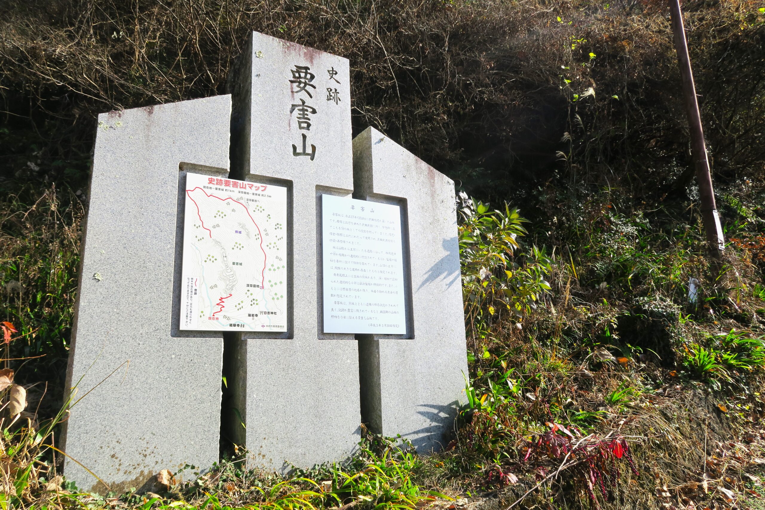 登城道の入口には史跡要害山の説明看板が据えられているのですぐにわかります。