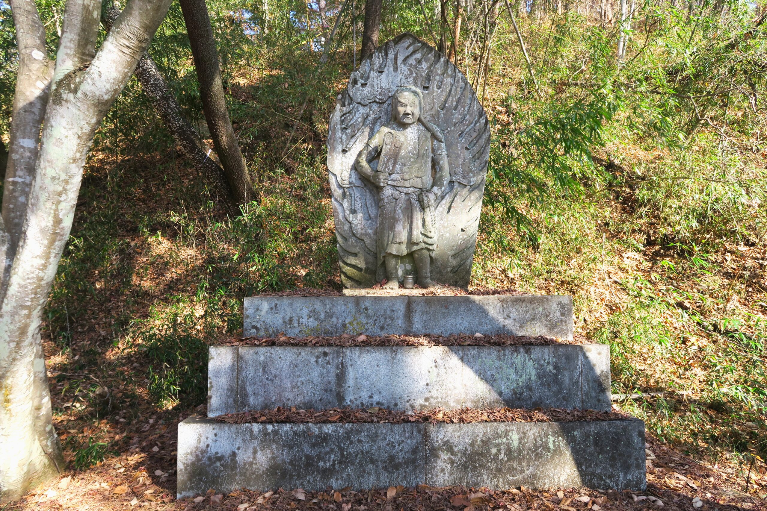 最初の大きな曲輪が「不動曲輪」です。この名称は、江戸時代後期に建てられた信玄の姿を模している武田不動尊が建立されていることに由来します。